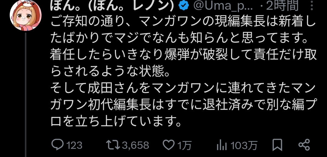 | … | 61726/02/27(金)23:04:02No.1406195780そうだねx5>初動ミスってるんだから誰が編集長でも爆発するわこんなん |