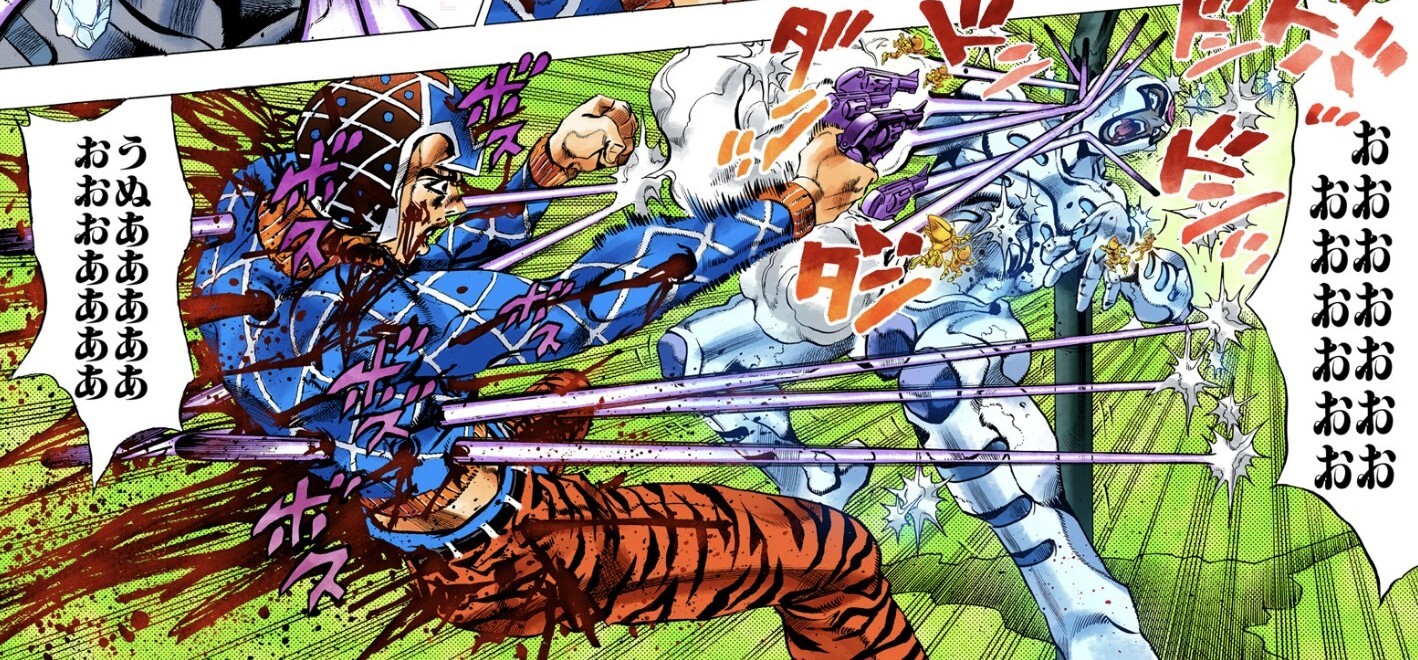 | … | 12526/02/27(金)23:30:24No.1406209354そうだねx1>スタンド関係なく銃に弾こめて撃つ才能がある |