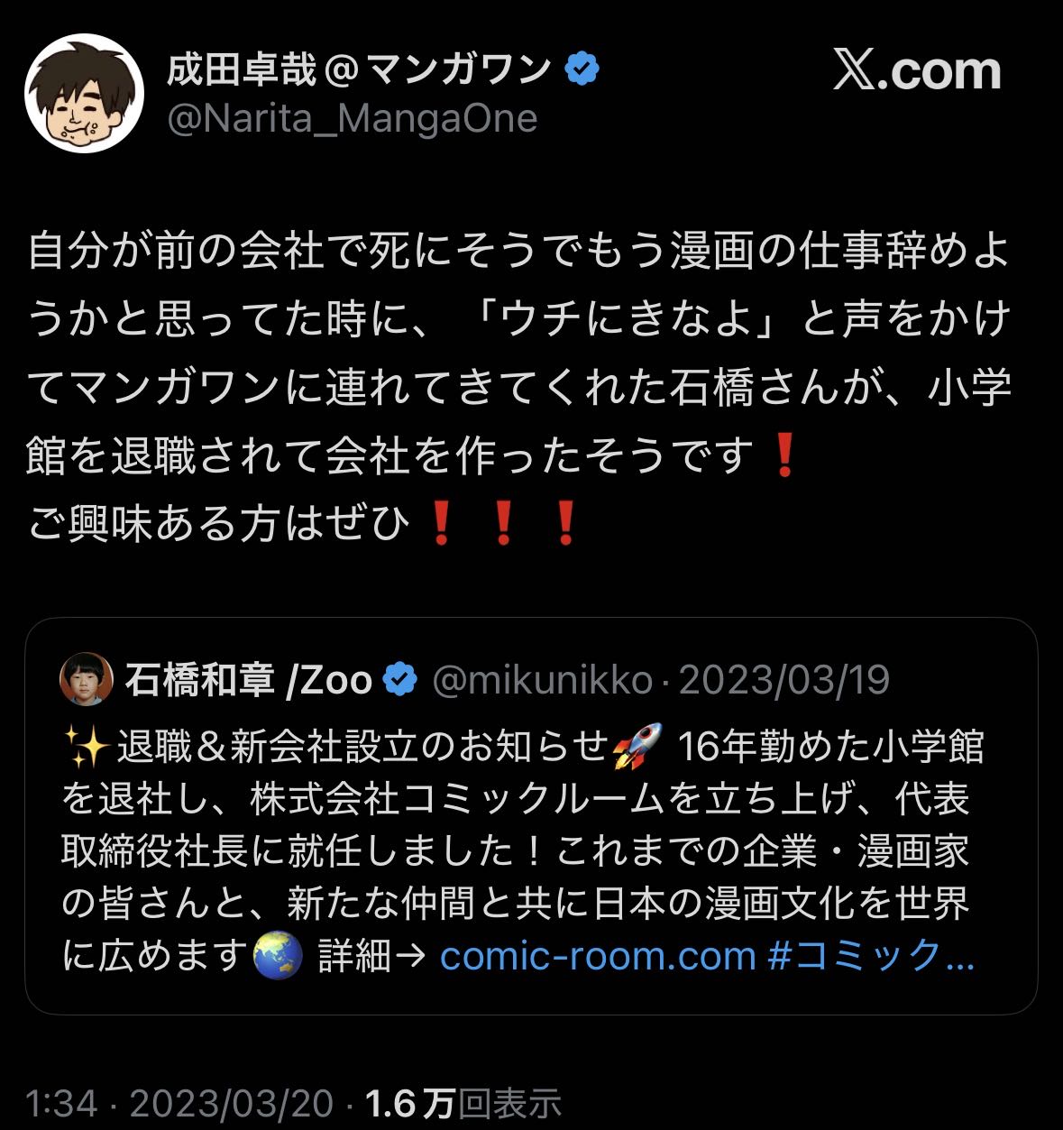 | … | 91226/02/28(土)09:15:39No.1406285268そうだねx1>事情知ってるどころか成田編集を連れてきた前編集長の豆野は役員待遇でめちゃコミに転職してる |