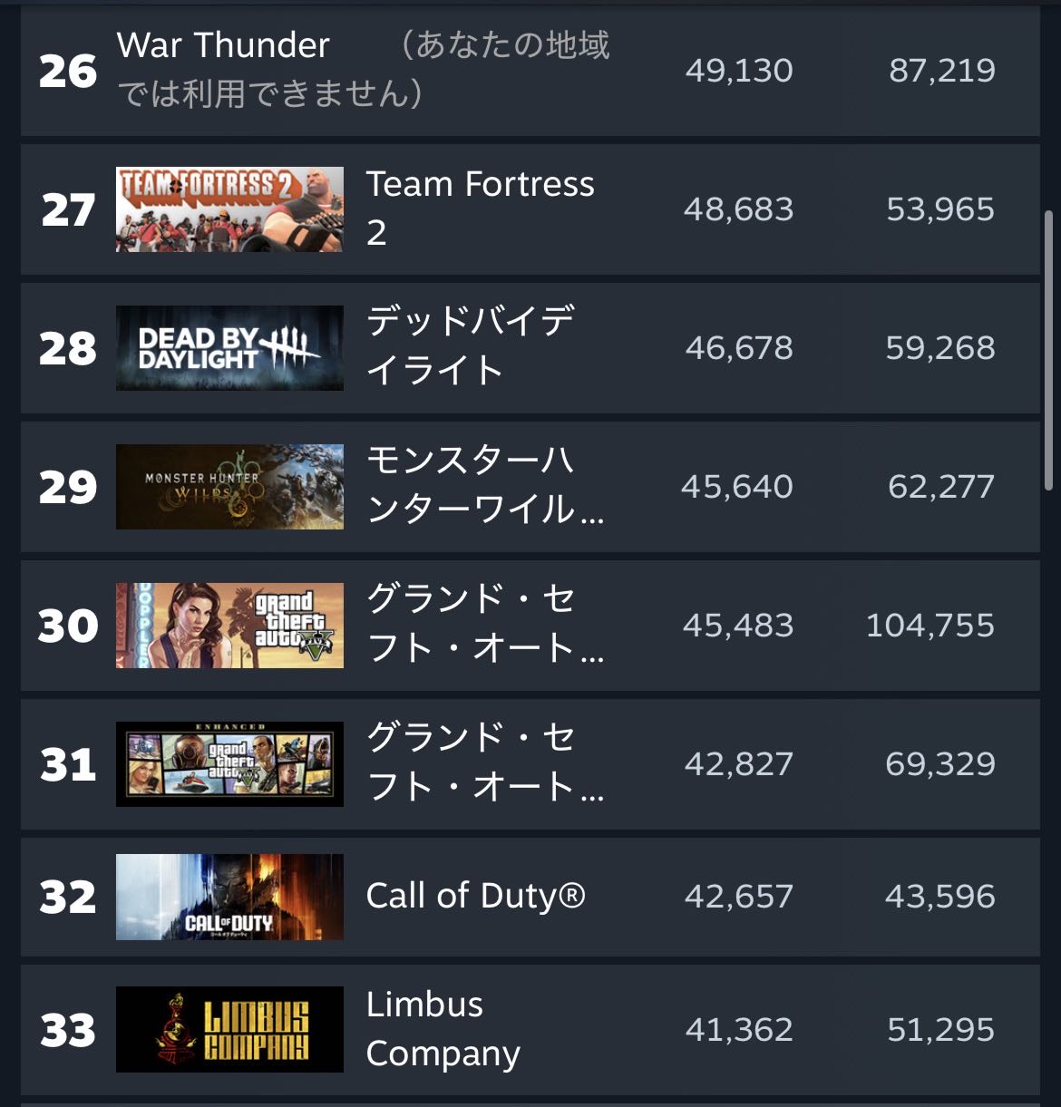 | … | 91026/02/28(土)13:22:27No.1406343103+>1年前はSteamで同時接続100万人以上いましたね… |