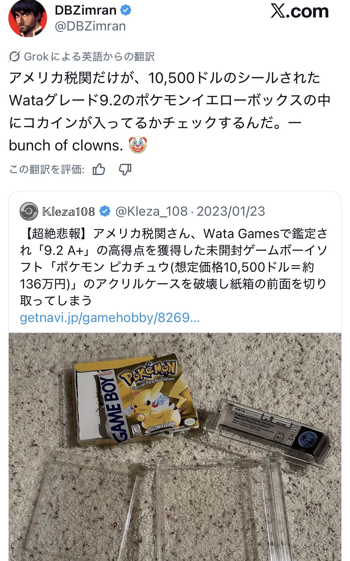 | … | 51126/02/28(土)15:24:58No.1406374281+PSA認証とかは直接送り付けの方法だとこういうリスクあるんだっけ |