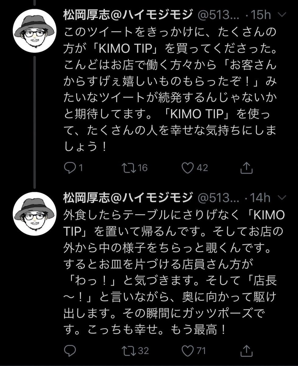 | … | 33826/02/28(土)19:34:45No.1406443840そうだねx1キモチップは金払いたくないけどチップ文化のいいとこだけ受けたいみたいな提案者のキモさがな… |