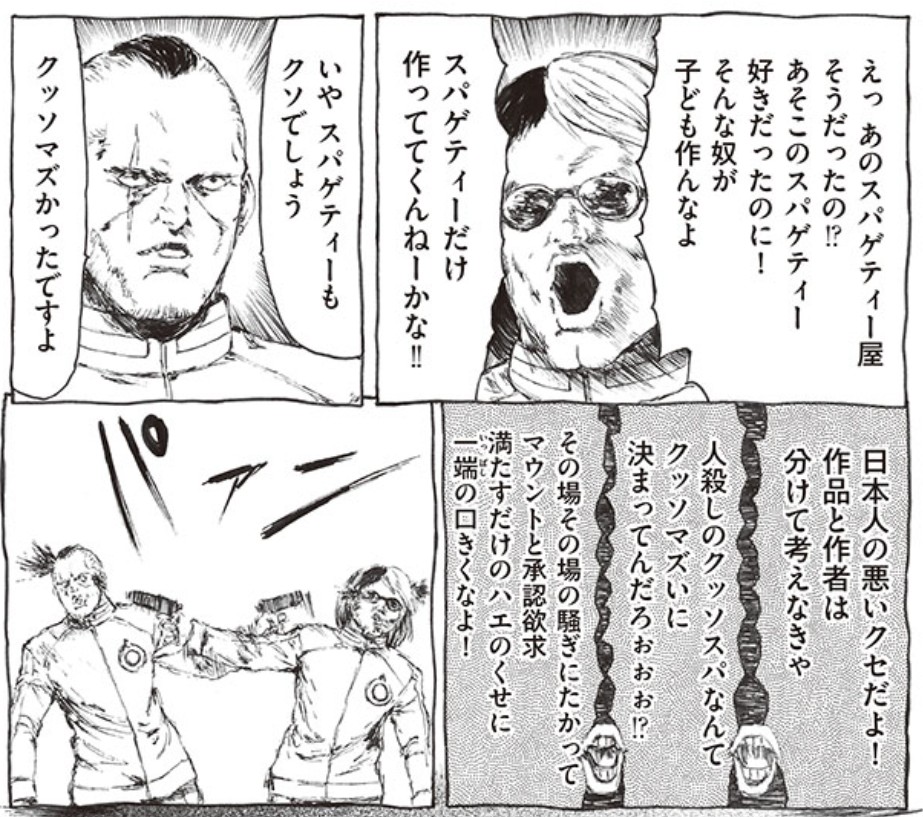 | … | 9226/02/28(土)18:55:29No.1406430935そうだねx1問題はあのスカトロレイパーの漫画は普通に人を選ぶ微妙な作品で美味いスパゲッティとは言い難い事だ |