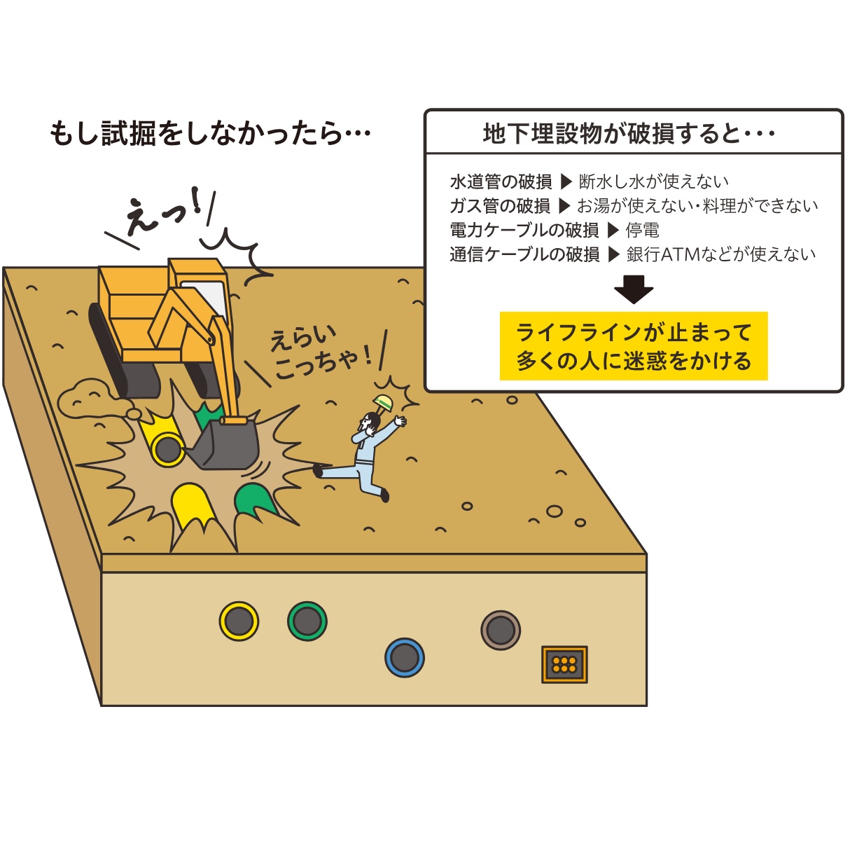 | … | 1526/02/28(土)22:36:47No.1406514403そうだねx2>恐怖!配管の周囲に危険域判別用の砂も予告シートも無くてバケットの爪の違和感で止めたら集合線! |