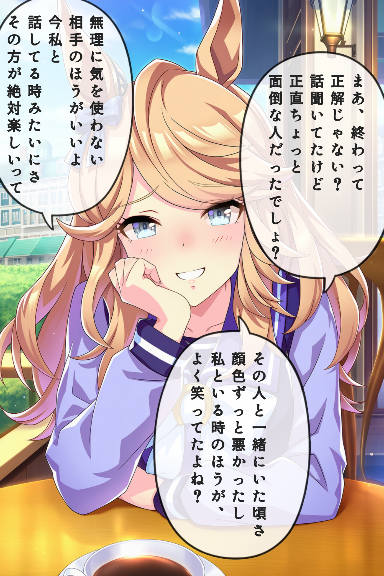 | … | 1226/02/28(土)23:48:55 ID:NzfjDnZcNo.1406539677+アタシと話してるときのトレーナーすごく自然体じゃん?そうそう今みたいな感じでさ |