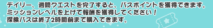 | … | 33026/03/01(日)01:48:51 ID:xo3j1sucNo.1406572619+こんなギリギリに探検パスを買う「」ミーなんているにゃん…? |