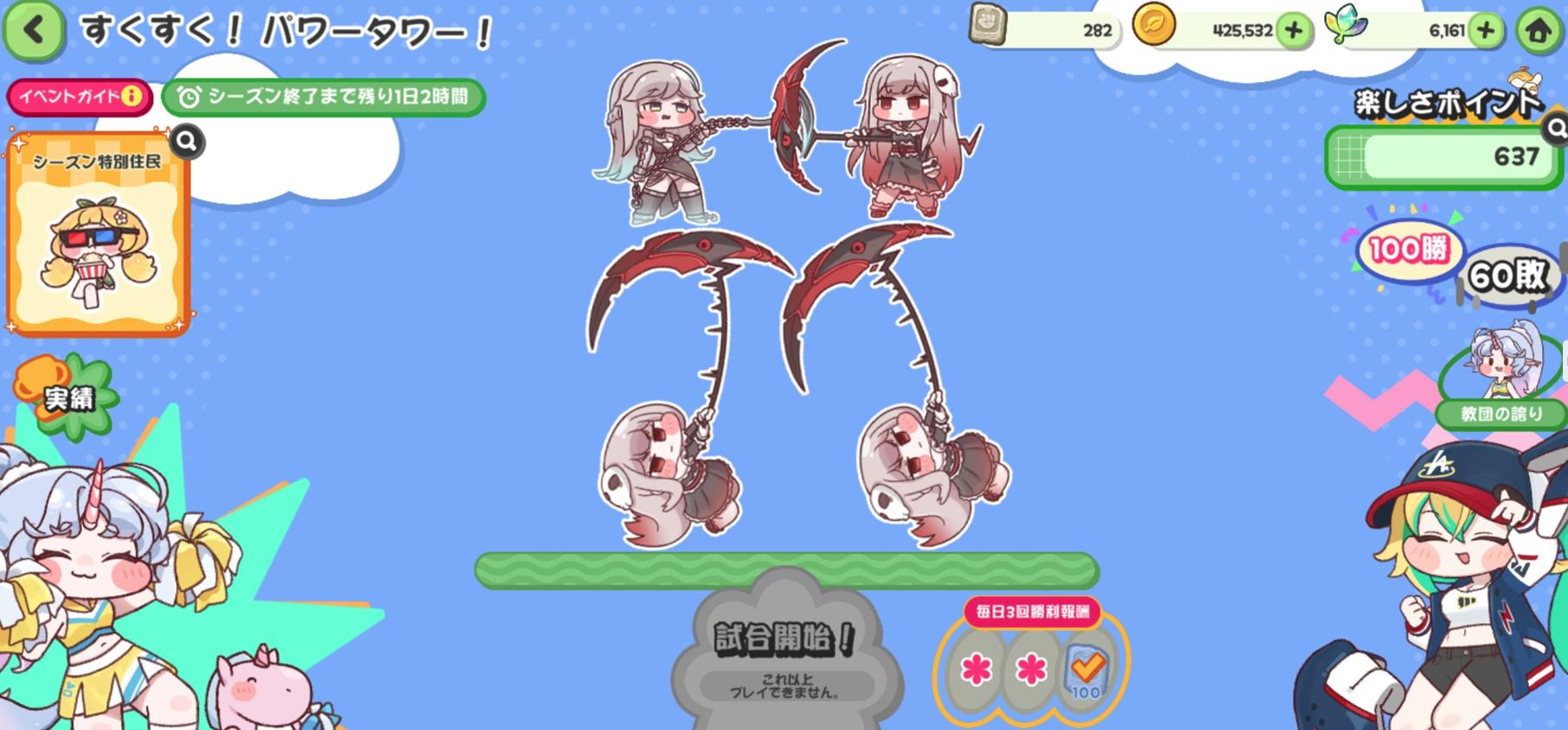 | … | 30126/03/01(日)01:41:11 ID:WH2vyeQ.No.1406570974+次回純粋有利で良い機会だから娘育てっか!と思ったけど物理ダメバフ入るからシオンとかエピカいればいいかにゃん… |