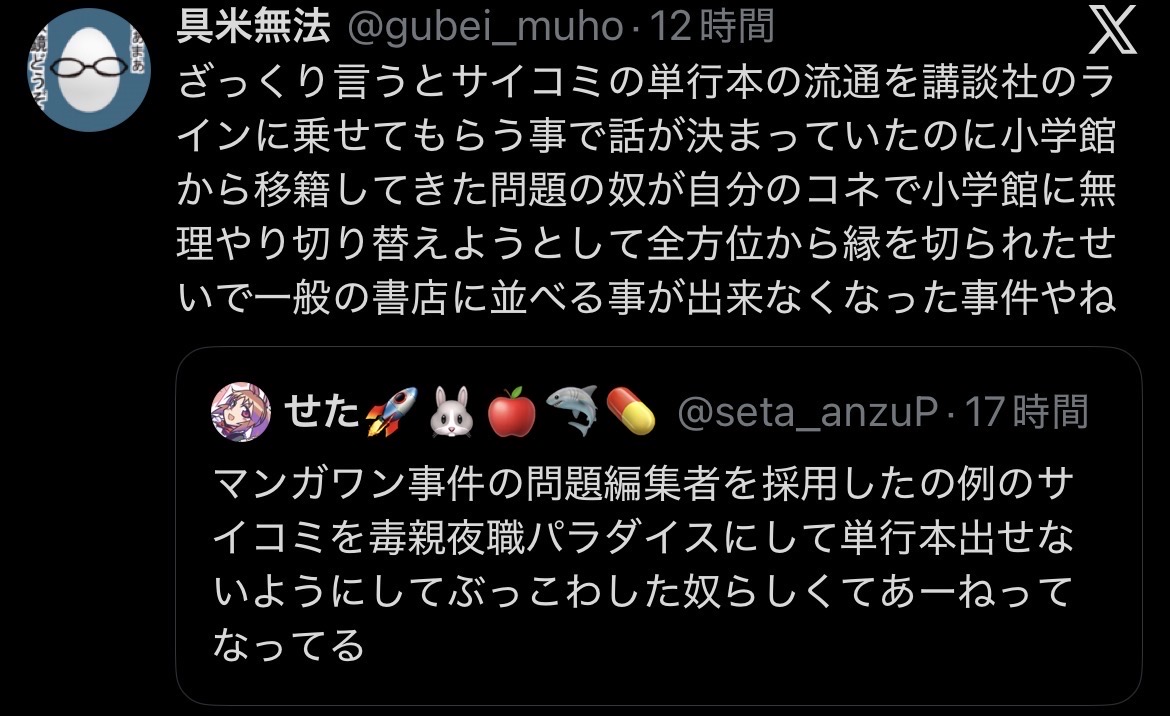 | … | 6226/03/01(日)07:25:11No.1406597942そうだねx1なんかこう小学館自体の体質にも問題あるんじゃないかこれ…? |