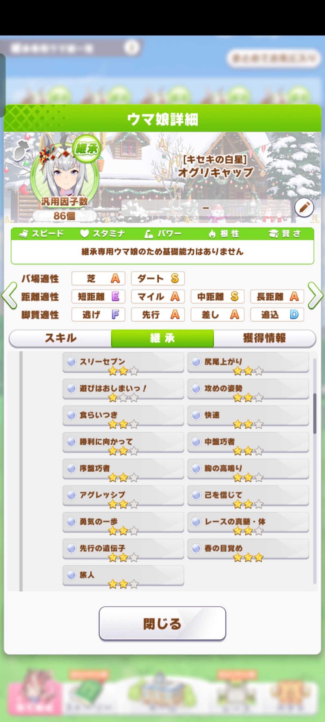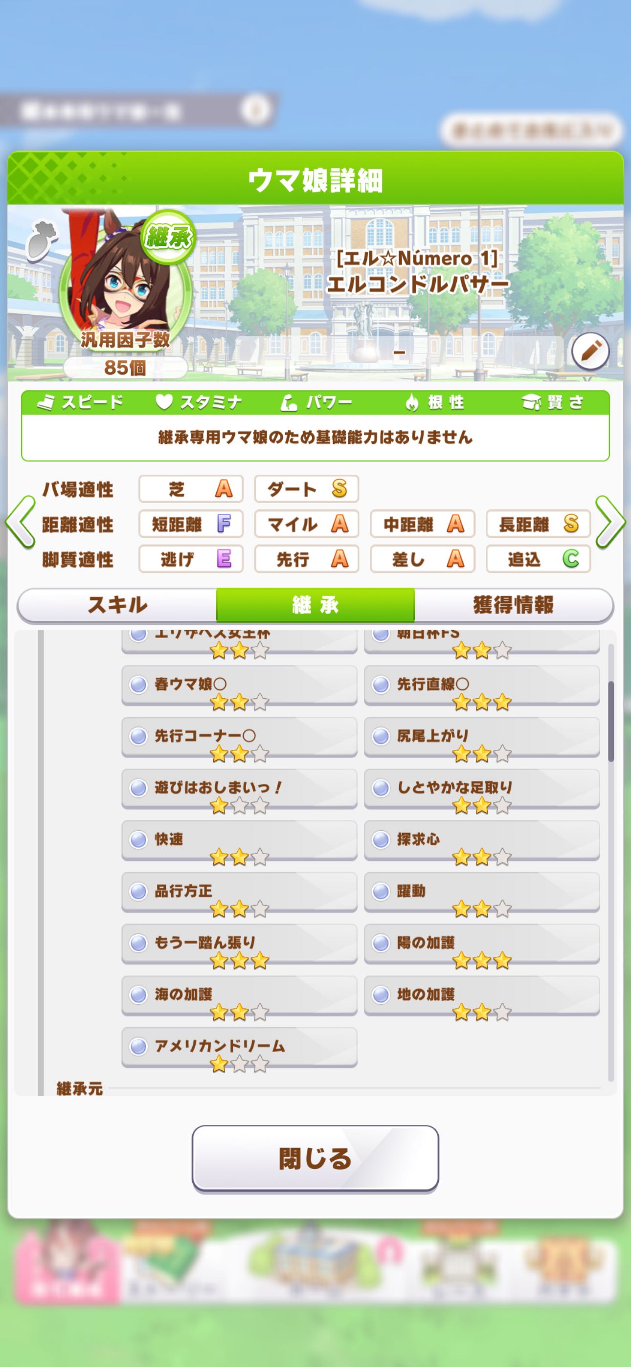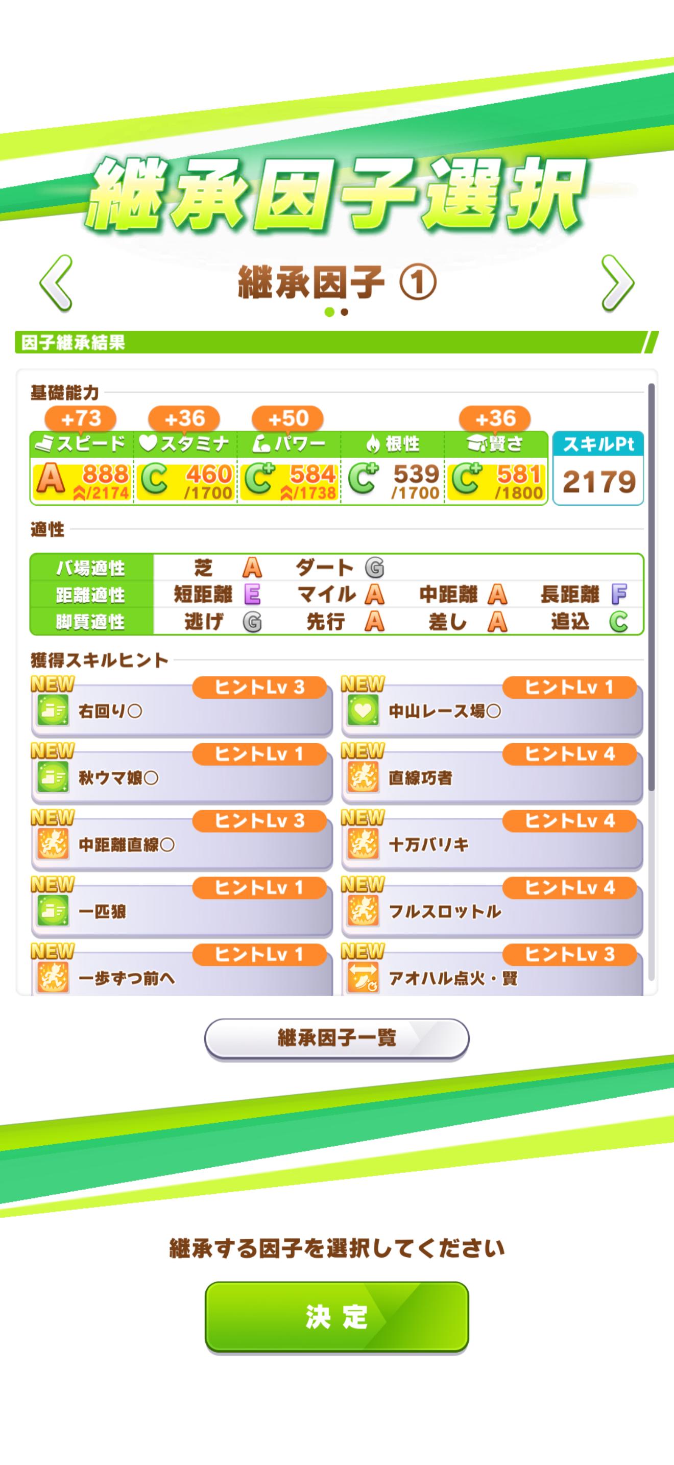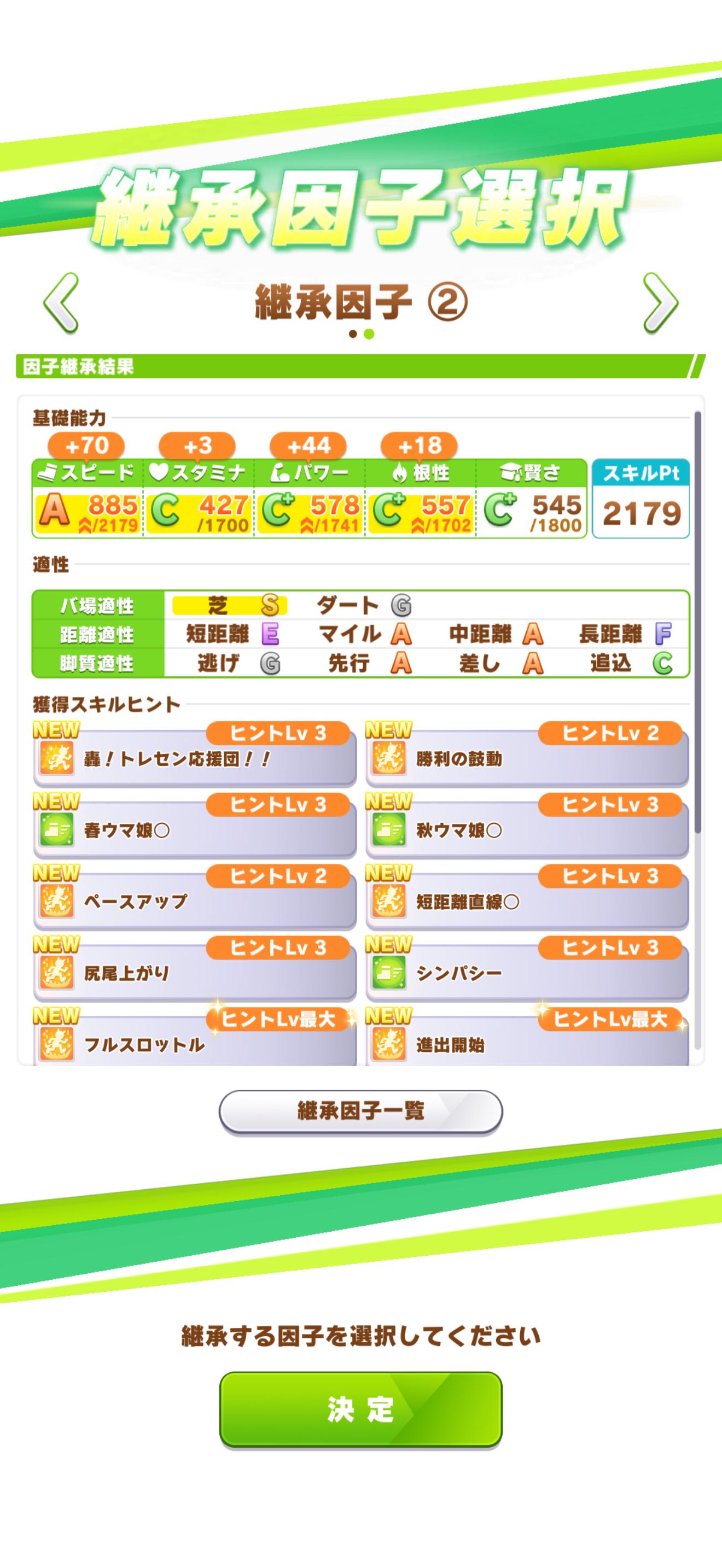 | … | 9326/03/01(日)05:10:59 ID:iWRNUkUQNo.1406592949+技能試験バトルだと緑はいくらあってもええですからねって感じなんですが因子に残すの大変ですねこれは… |