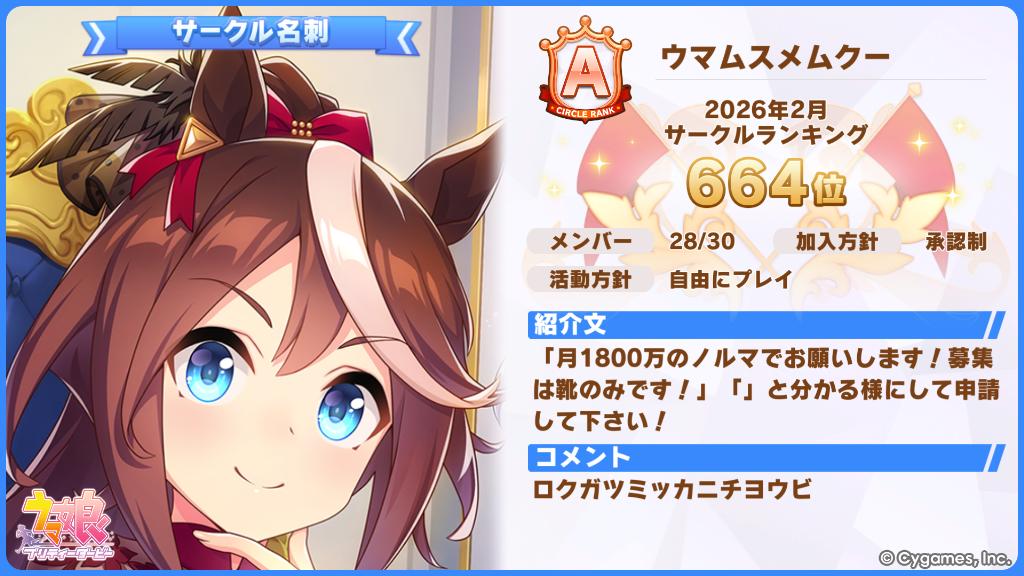 | … | 8826/03/01(日)12:42:58No.1406668235そうだねx1現在2名募集中の2月は664位でAだったサークルです!ルールは3つのみです! ・ノルマ1800万、月末に1回だけチェック ・連絡なしで3日イン無しについては追放の場合あり ・募集は靴のみ