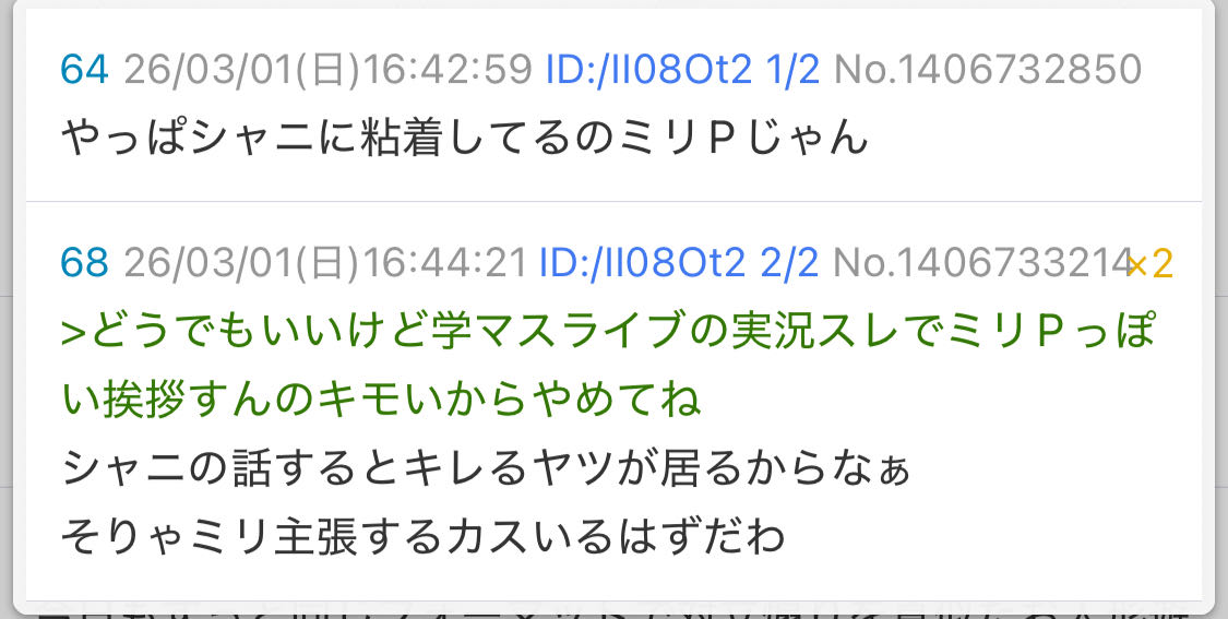 >何故ミリPは本垢でシャニ叩きをしてしまうのか