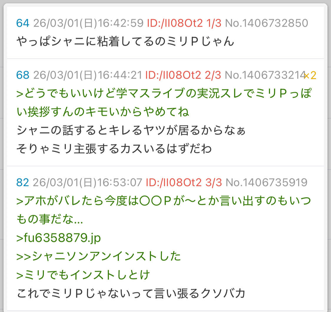 >これでミリPじゃないって言い張るクソバカ