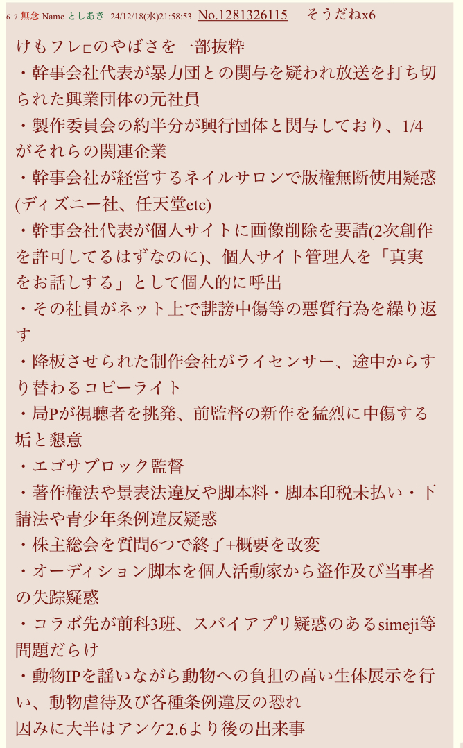 | … | 2726/03/02(月)03:48:06No.1406928067+今あの会社で一番人気の作品(事件とは関係ない)を妨害して抗議しよう!ってとこも同じだね |