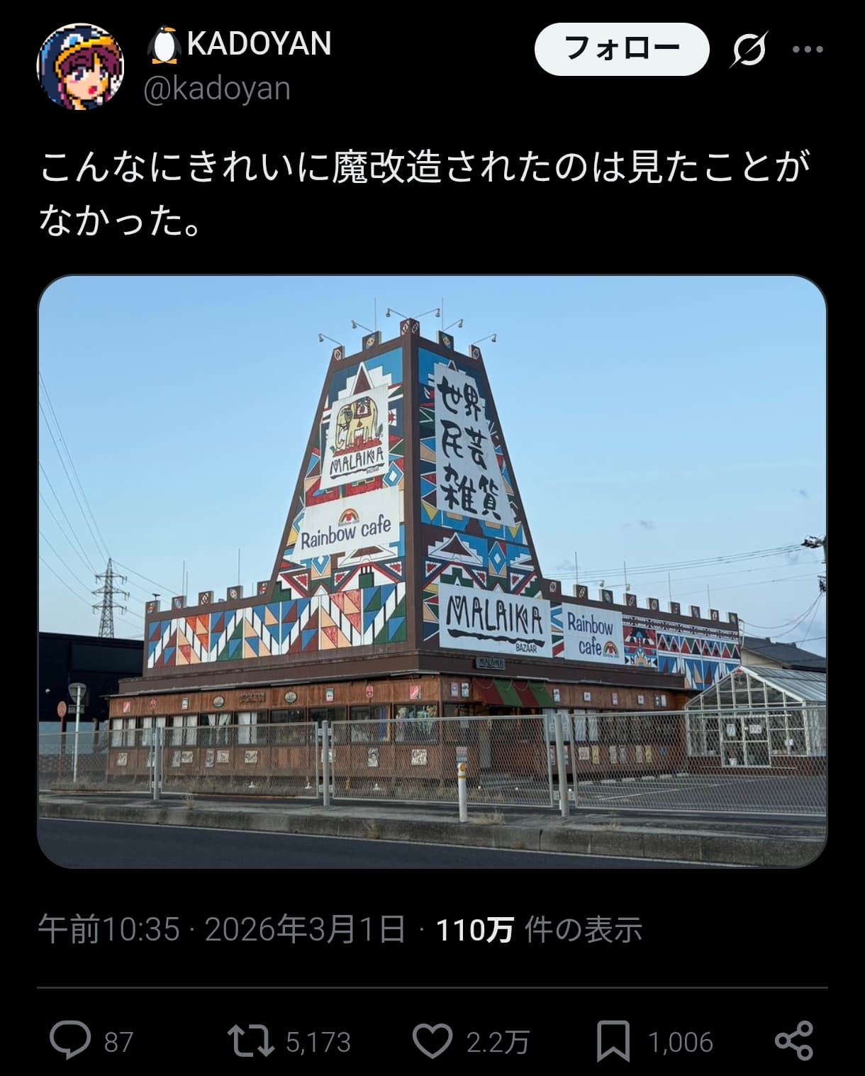 | … | 126/03/02(月)01:59:02No.1406917809そうだねx1地元の知ってる場所がバズってるとなんか嬉しい |
