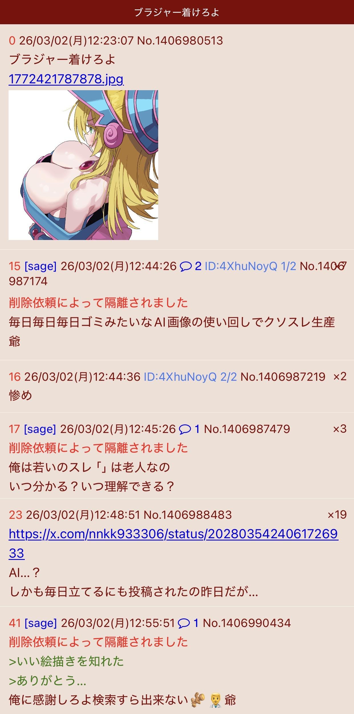| … | 2326/03/02(月)12:48:51No.1406988483そうだねx20https://x.com/nnkk933306/status/2028035424061726933 |