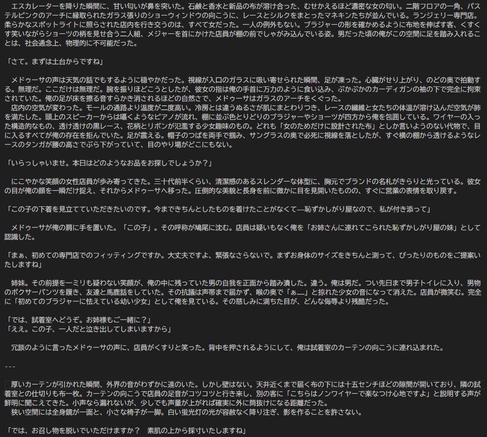 | … | 826/03/02(月)13:30:26No.1406998733そうだねx1エロ小説は直接指示させると駄目だけどGeminiが勝手にシチュを思いついて書く分にはまだ緩いからまだなんとかなるだろ |