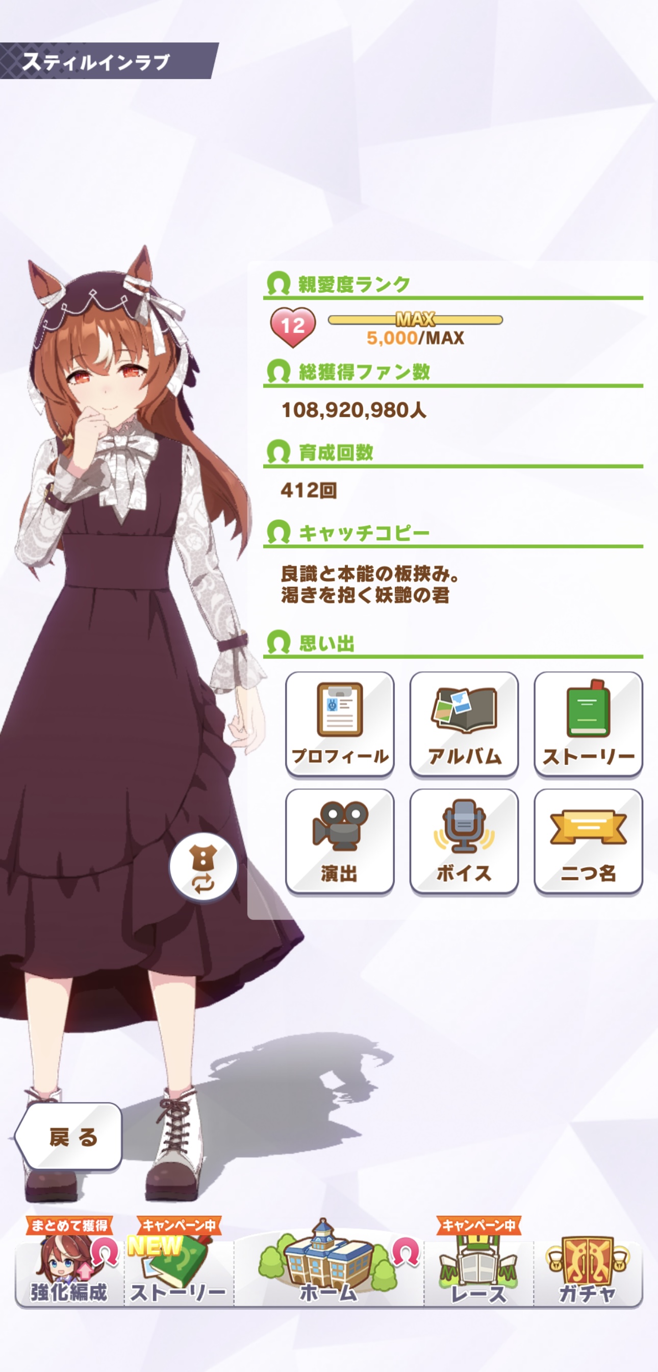 | … | 8726/03/02(月)23:31:53No.1407200523+もう全部パワーでスタミナ上げるのしんどいのでスタミナで根性上げます |