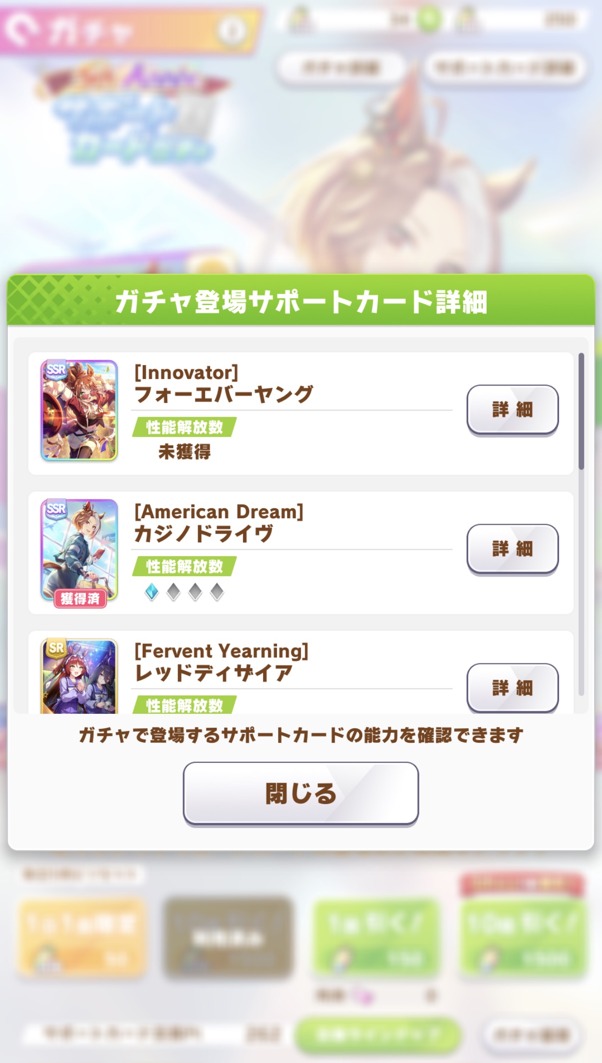 | … | 30626/03/04(水)04:21:31No.1407525762+>サポカガチャ150連目でやっと1枚目のSSR出ました…確率厳しすぎませんか? とりあえず550連して下さい |