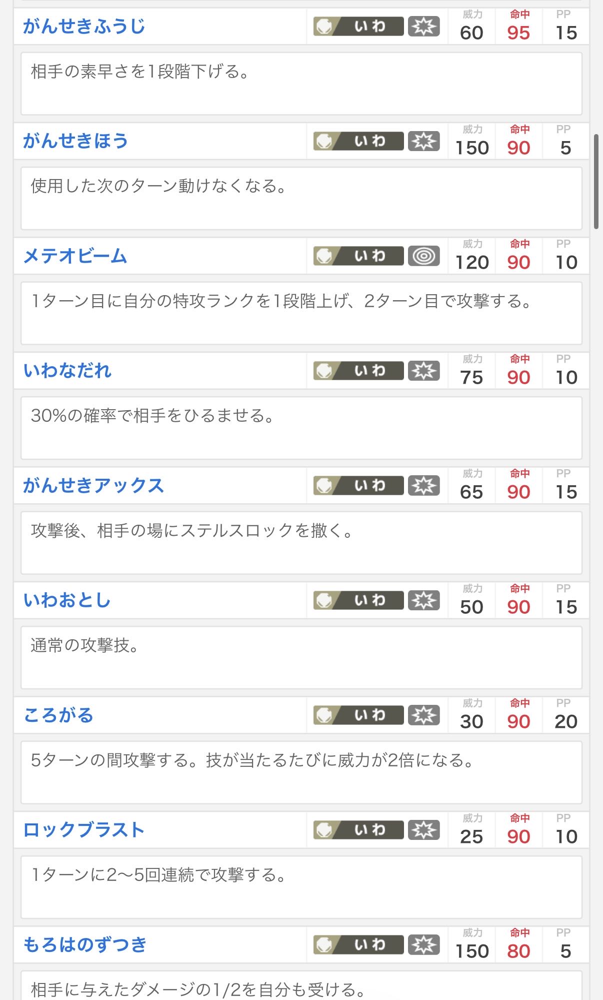 | … | 9526/03/04(水)02:44:53No.1407521650+元々威力50命中80だったのにがんせきふうじ |