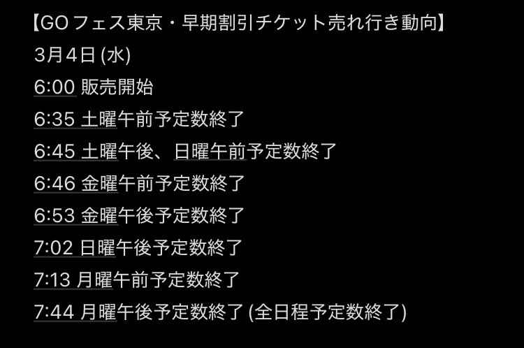| … | 3226/03/04(水)07:15:25No.1407531425+GOフェスグローバルはやや先の7月11.12日の開催。カレンダーに入れておきましょう。 |