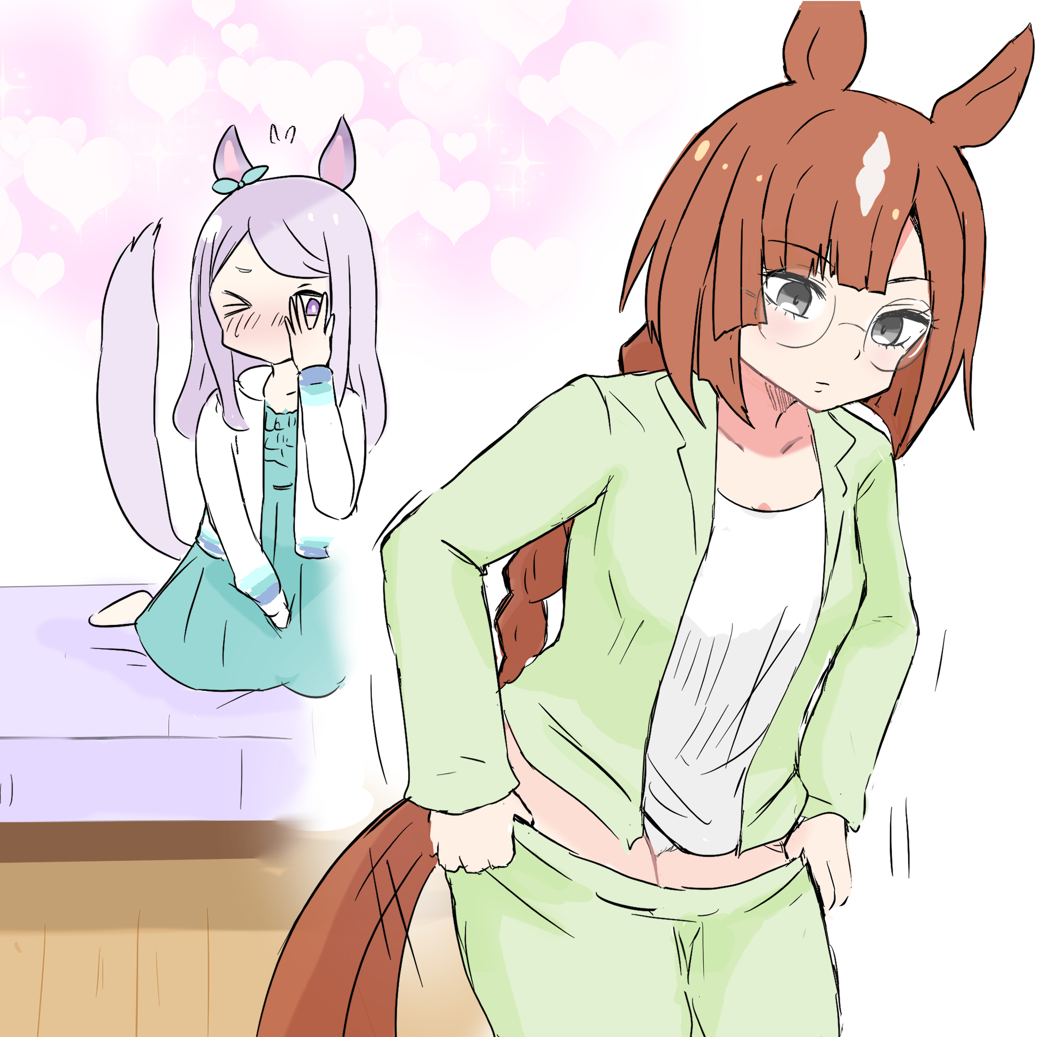 | … | 2126/03/04(水)09:37:21No.1407549391+👓️私もマックイーンさんが着替えている時に凝視しているのでおあいこですね |
