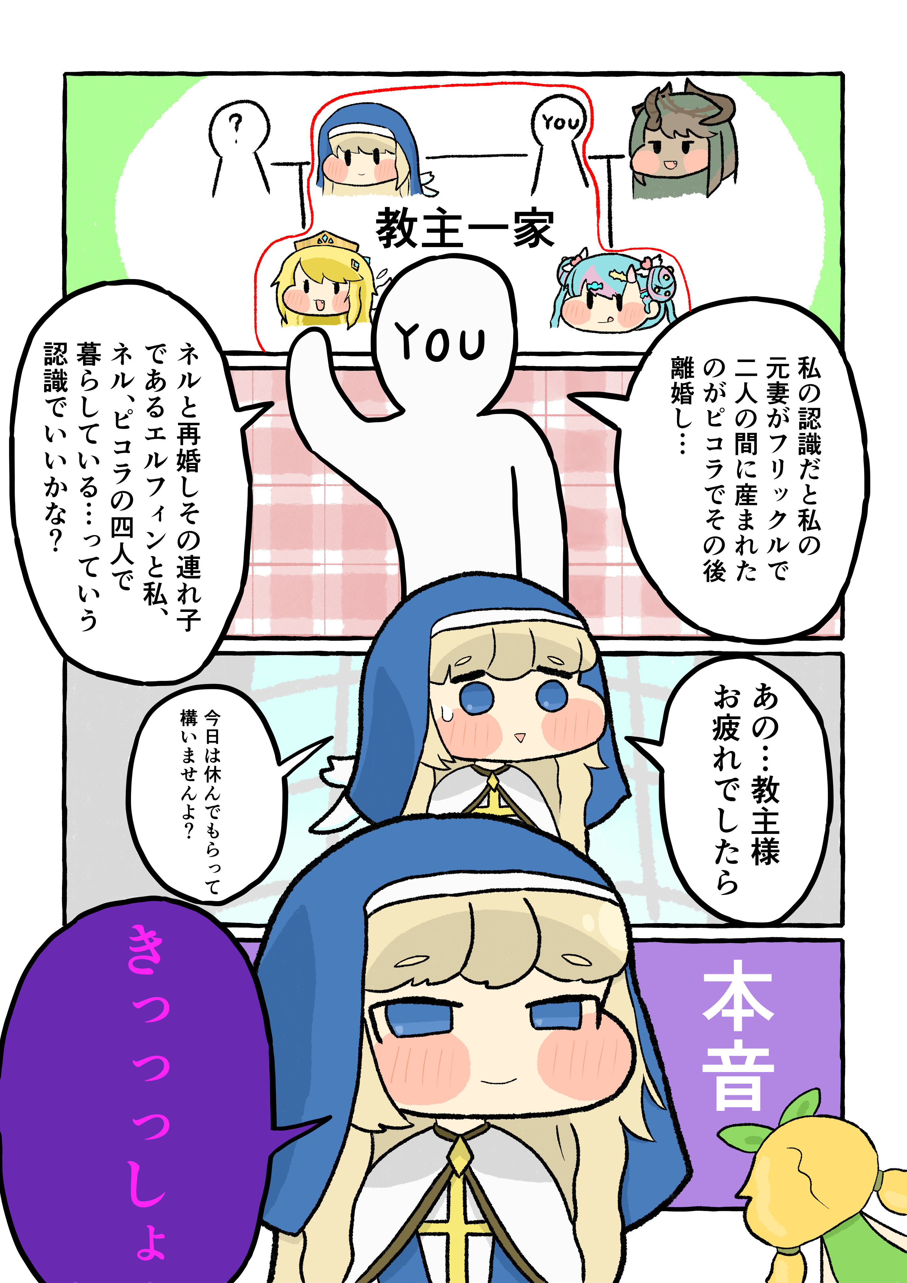 | … | 30426/03/04(水)12:22:13 ID:86KfYLS2No.1407578632+フリックルとはピコラの教育方針の行き違いで離婚したにゃん |