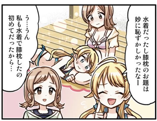 | … | 1826/03/04(水)12:15:16No.1407576517+4コマ見てて思ったんだけど真乃って膝枕経験者なんだな |