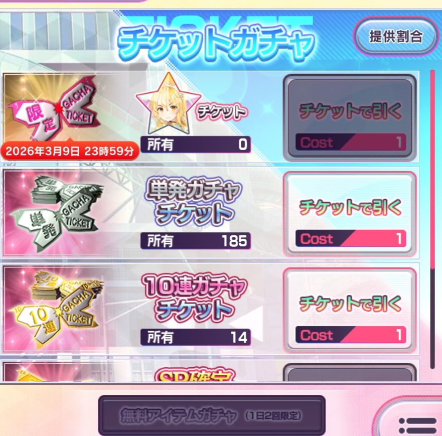 | … | 6626/03/04(水)11:56:17No.1407572253+>恒常だし来週になって通常ガチャチケ回してからでもいいよね…表情 |