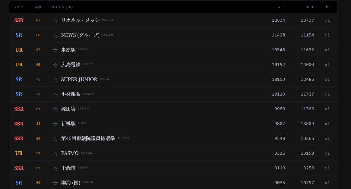 | … | 35826/03/04(水)16:27:26No.1407631935+ATKが高ければ見る人が多いしDEF高ければ文量が多いしレア度が高いと記事のクオリティが高い |