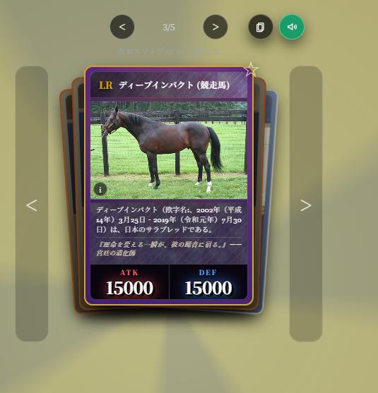 | … | 6326/03/04(水)14:52:21No.1407613728+ディープインパクトが15000/15000で最強らしい |