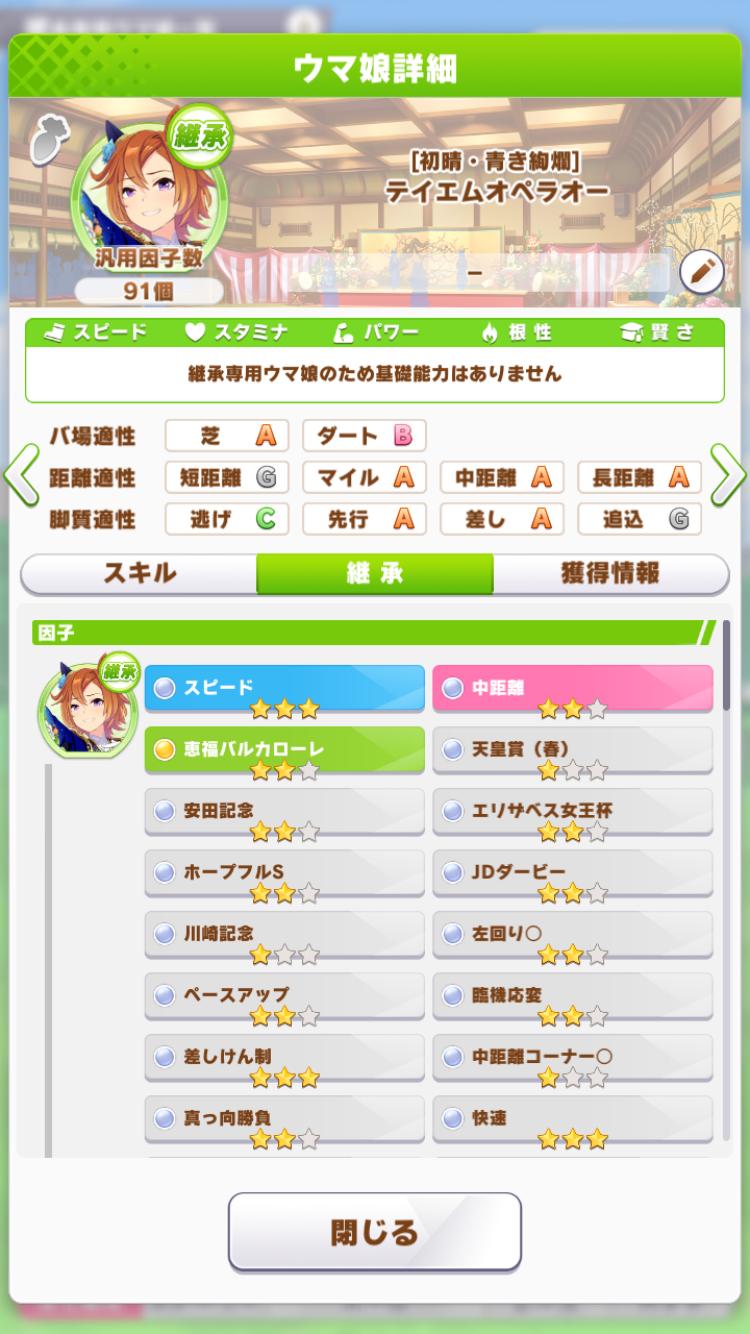 | … | 2026/03/04(水)17:56:30 ID:txnQe6CANo.1407651797+最近因子作るコストが重すぎてチャンミは同脚質だけで固めるかデバフ使うかになりがちです |