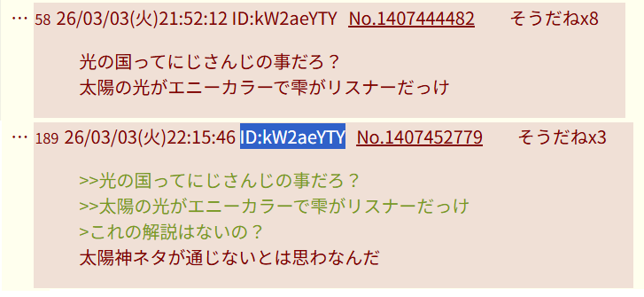 | … | 1026/03/04(水)18:34:58No.1407662446そうだねx3>太陽神ラーがなんちゃら |