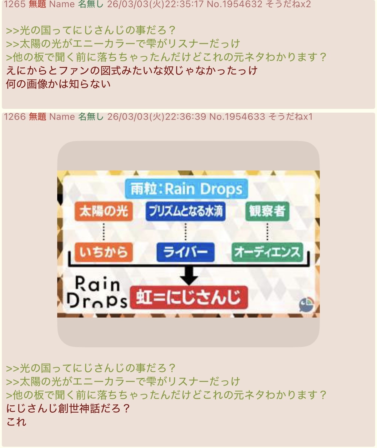 | … | 9526/03/04(水)21:01:47No.1407712527そうだねx3荒らしの思考回路 にじさんじ粘着を馬鹿にした= にじリスと肩組んだ → にじさんじの不祥事で遊戯王叩かれても文句言うな fu6373177.jpg |