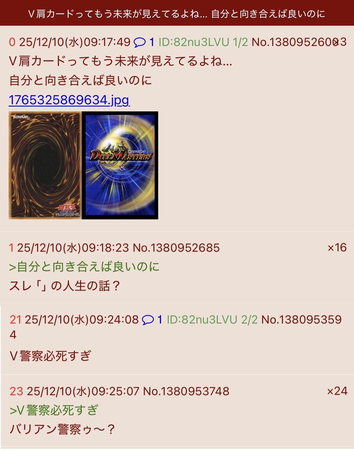 | … | 726/03/04(水)22:27:17No.1407743396そうだねx2>マスターデュエルに加えてデュエマって欲張りすぎだろ |
