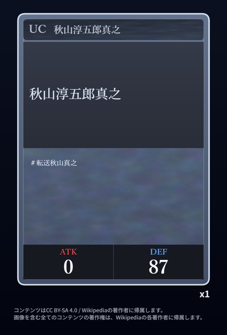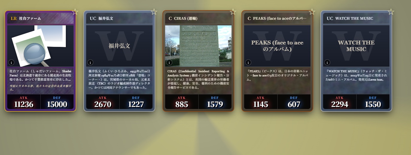 | … | 26326/03/05(木)07:29:08No.1407816495+出身中学・高校のカード引いちまった…アンコモンだった… |