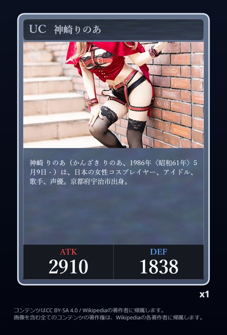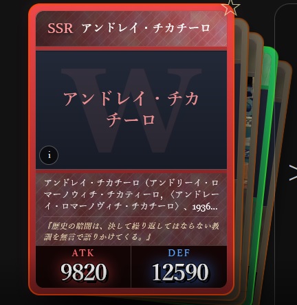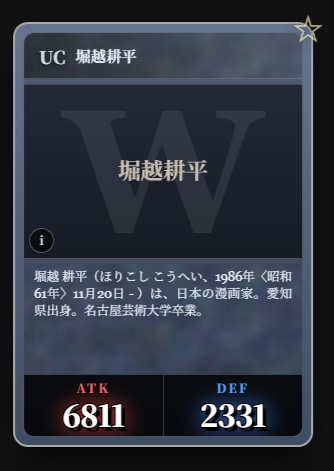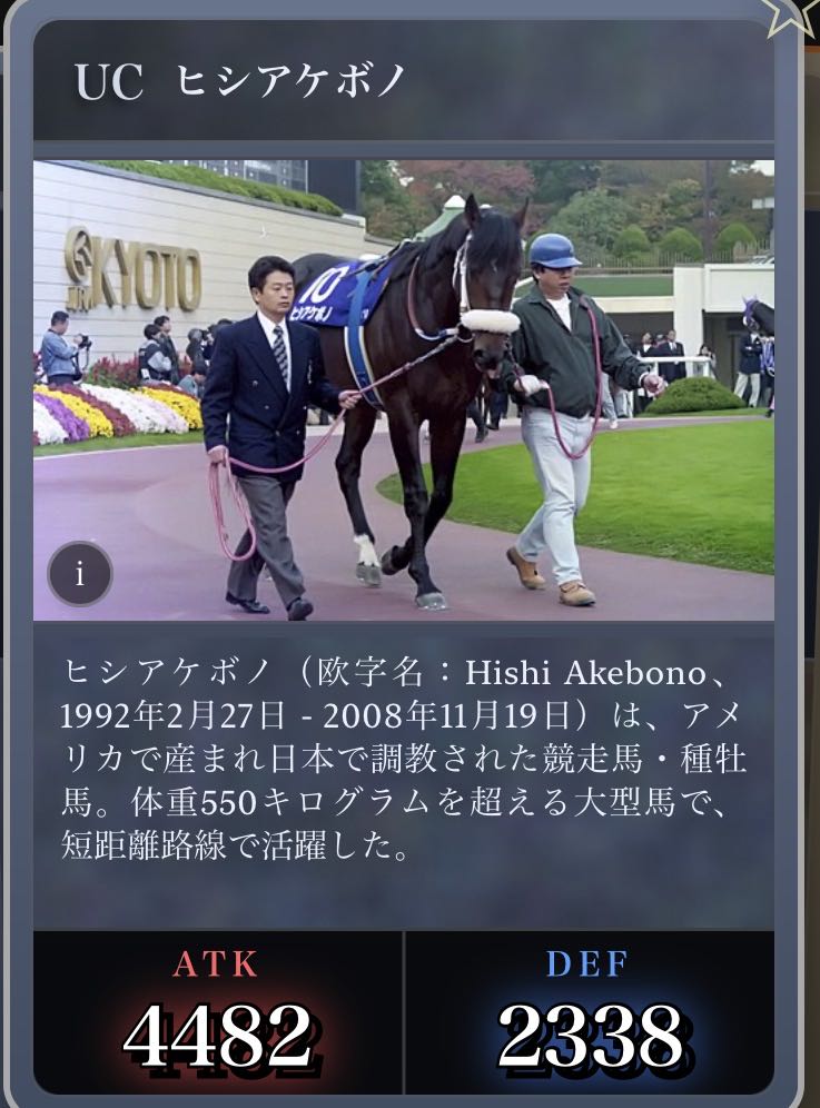 | … | 24726/03/05(木)07:17:39No.1407815500+そういやディープインパクトがATKカンストなのは知ってるけど他にカンストしてるカードあるっけ |