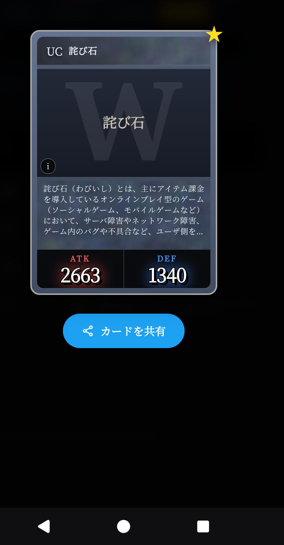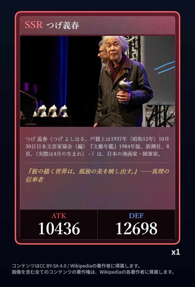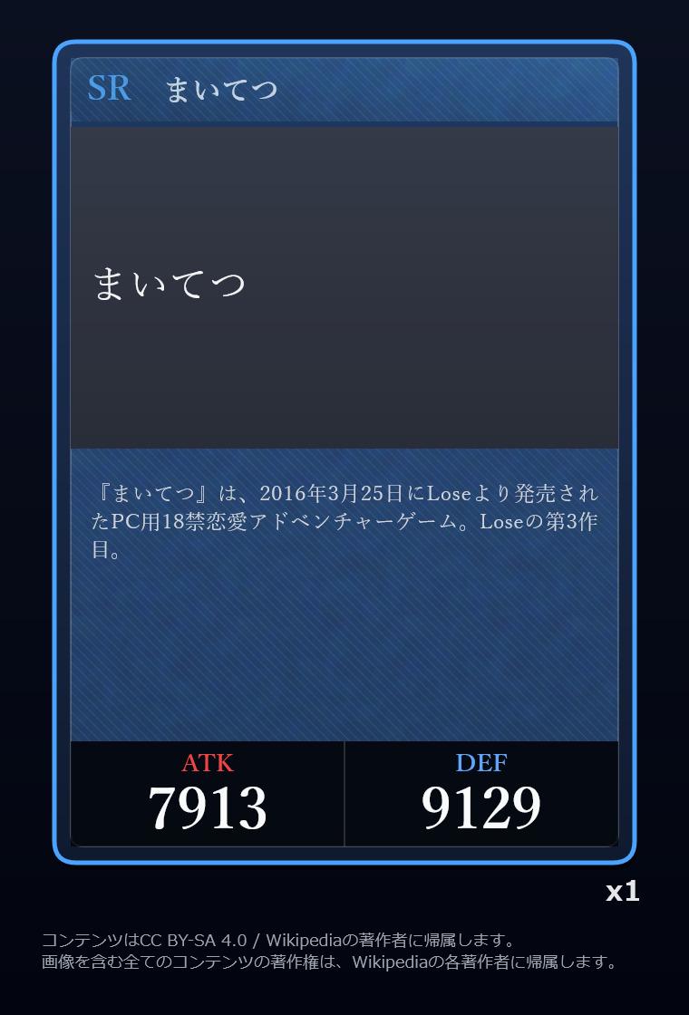 | … | 26126/03/05(木)07:27:18No.1407816334+対戦型カードゲームとして限定パック商法だのアバター商法だのを始めればミル貝の運営費が賄えるのでは…!? |