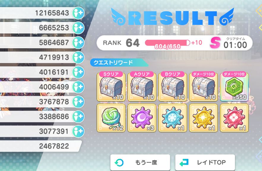 | … | 3026/03/05(木)18:25:41No.1407949451そうだねx2レイドの順位報酬は4位から下は同じ55コインだからそこまで気にしなくていいんだよ |