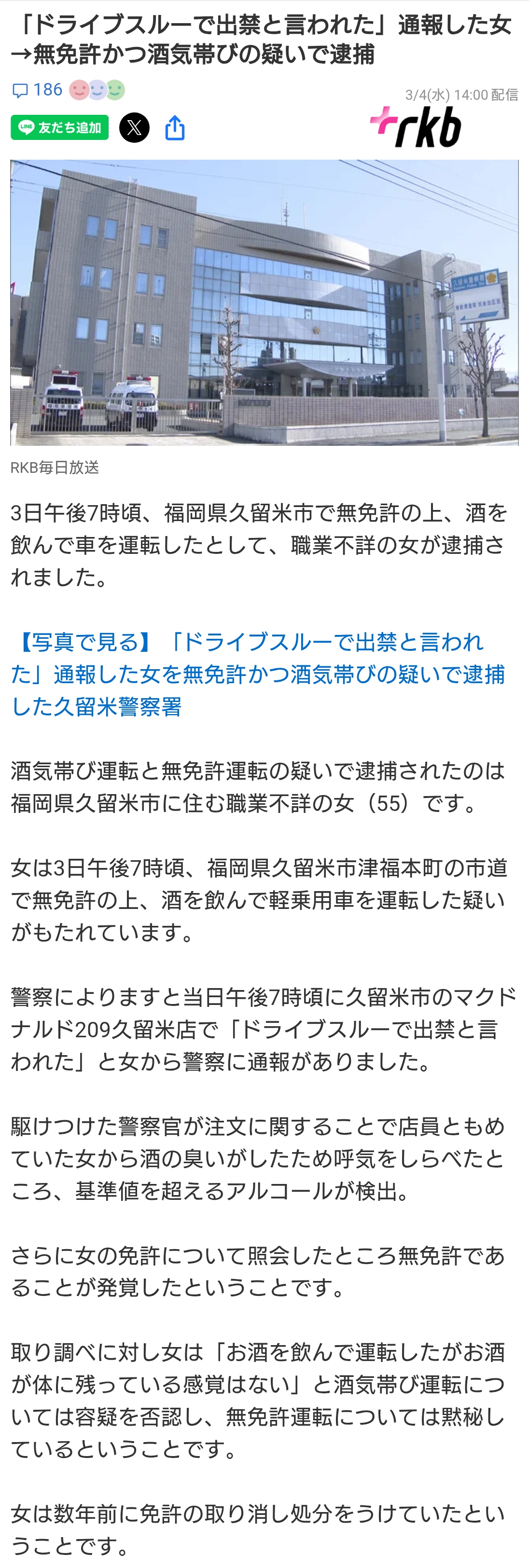 | … | 4326/03/05(木)19:24:36No.1407966522+>>無免許で飲酒運転してるのに自ら通報を…? |