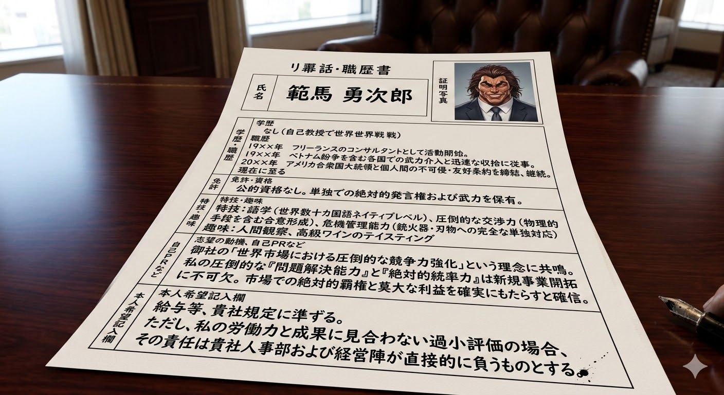 | … | 10826/03/05(木)21:22:45No.1408003711そうだねx2>俺も就職活動する勇次郎見てみたいからAIに書いてもらった |