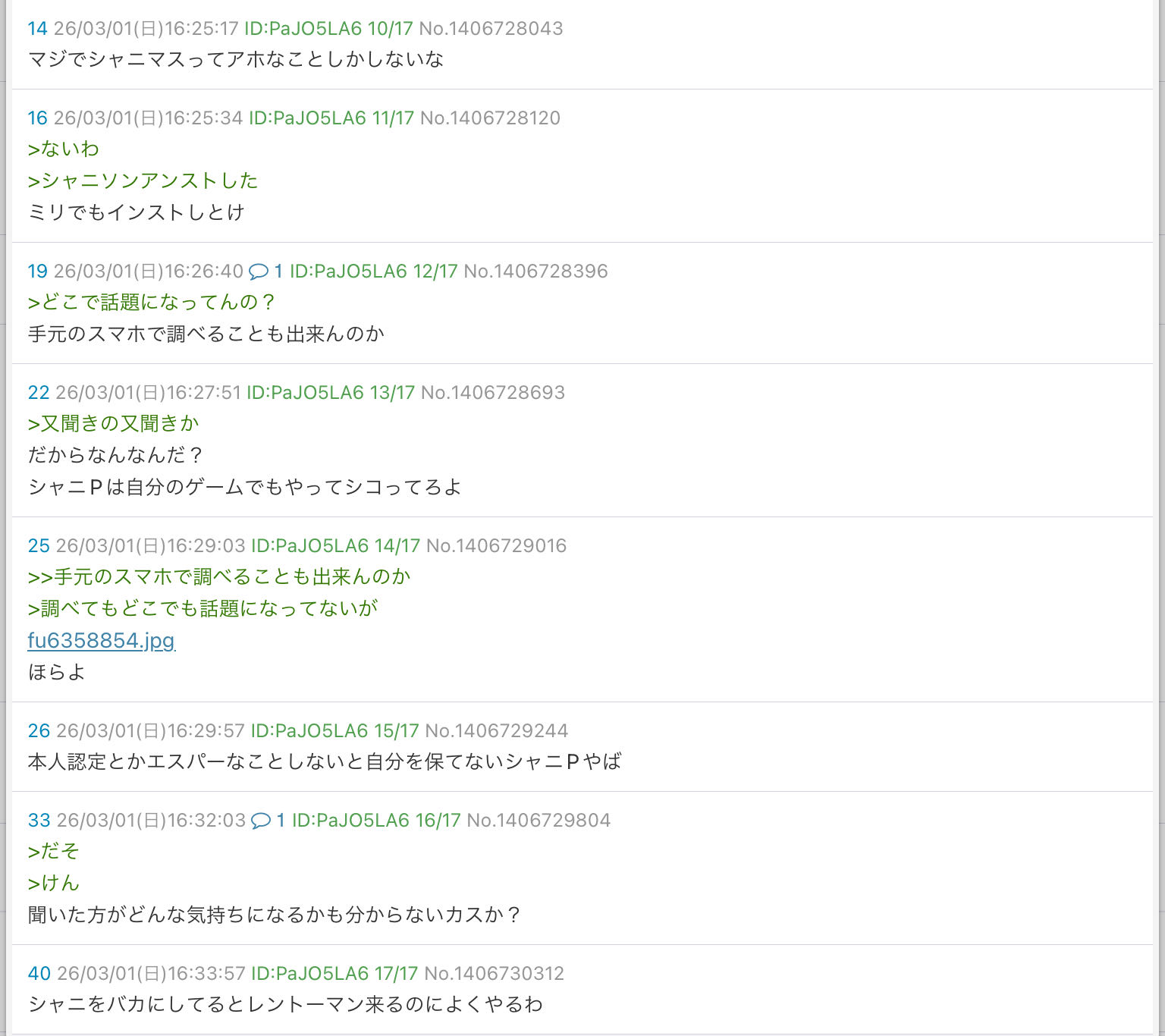 | … | 2426/03/05(木)23:07:00No.1408039946そうだねx1>こんなスレでコピペ連投来るの謎すぎる |