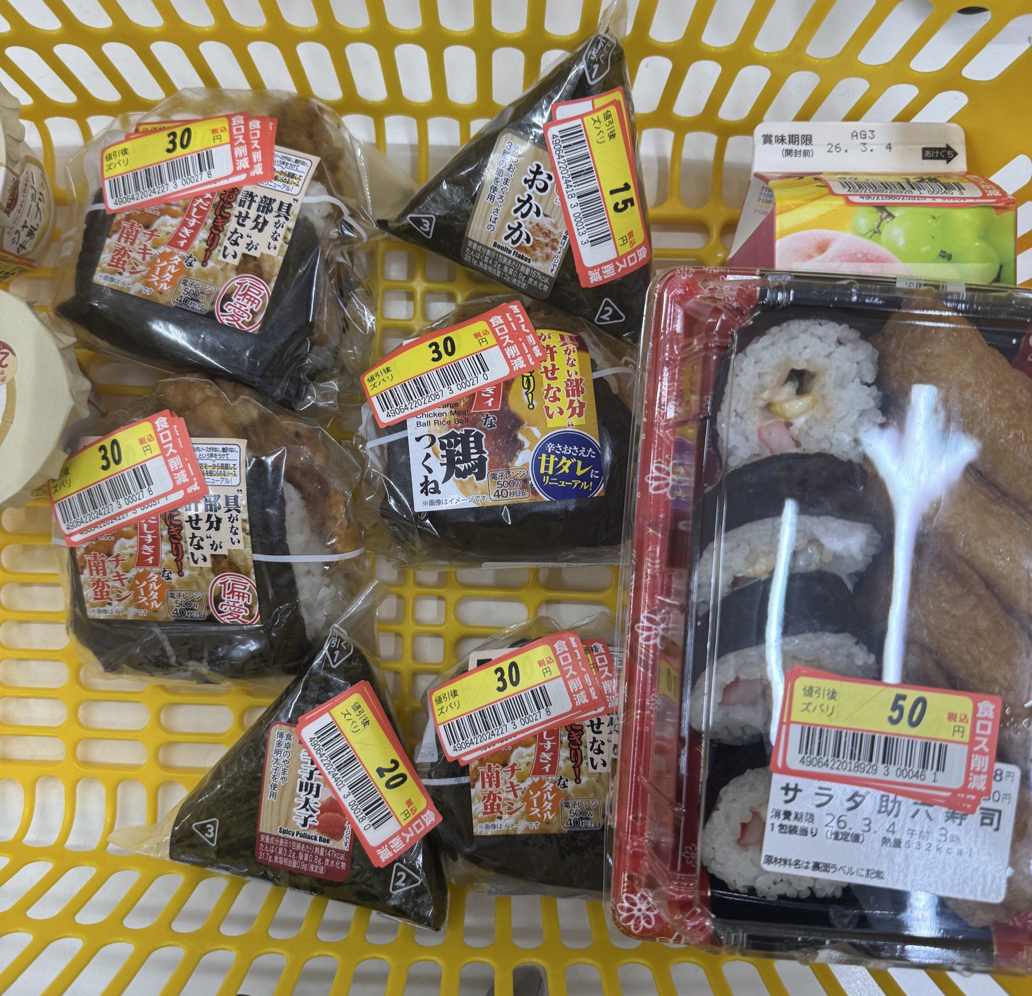 | … | 9826/03/05(木)23:40:50No.1408049466そうだねx1近くのマックスバリューは閉店30分前とかになるとこんな値段なるな |