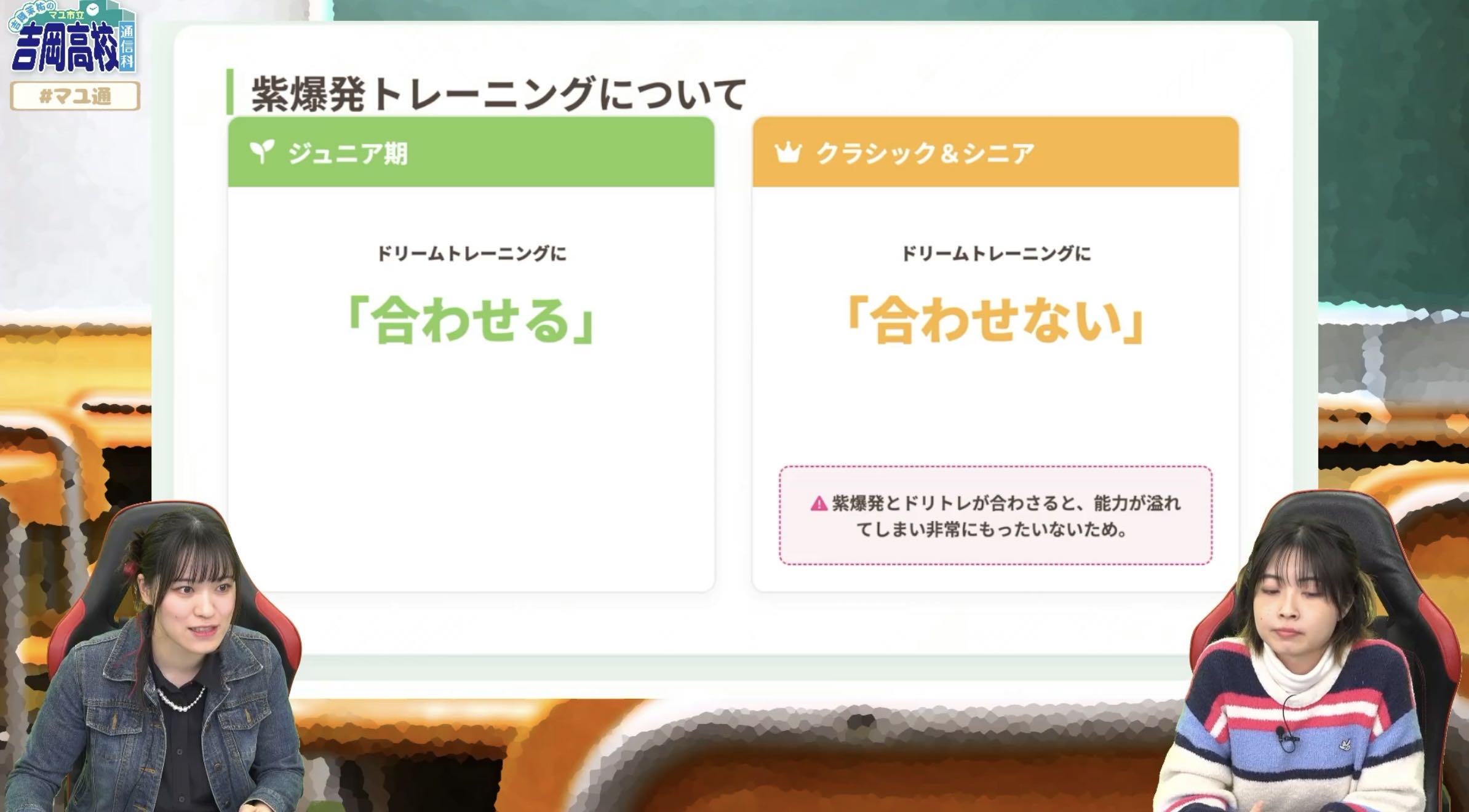 | … | 32226/03/06(金)12:08:46 ID:uAebDMBENo.1408137383+>通常トレーニングはサブステマイナス補正無いので紫付いたスタミナ友情で根性上げたいんですよね… |