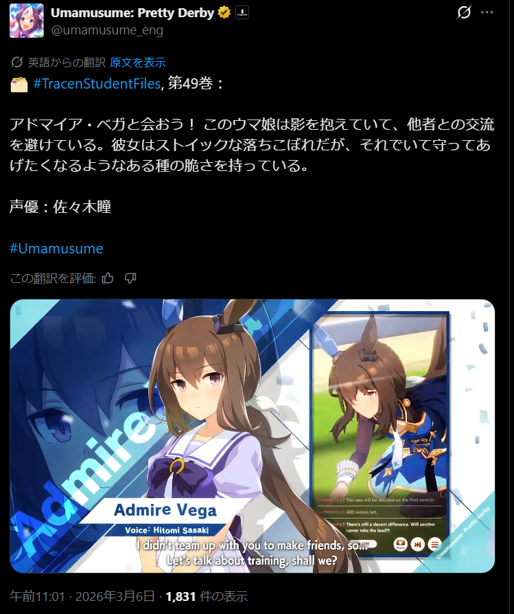 | … | 32826/03/06(金)12:09:42 ID:1Bl0lrOoNo.1408137608+加藤和宏氏がシリウスさん激推しでウマ娘プレイしてるの微笑ましく見てましたがいつのまにかUS踏めるぐらいにやり込んでてビックリしました |