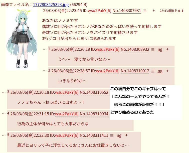 | … | 4026/03/06(金)23:17:29No.1408327615+これほんとにノノミ? |