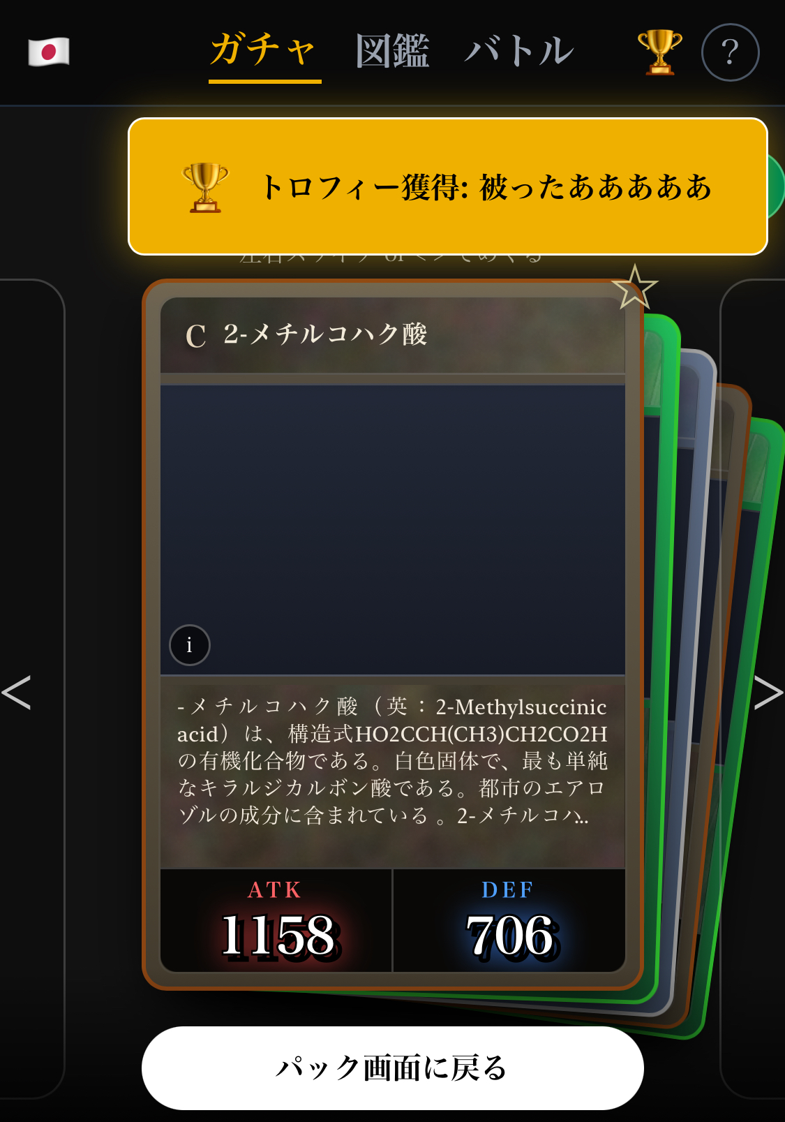 | … | 23126/03/06(金)23:58:45No.1408341222+運によるだろうけど680パックでレイド半分までしか削れてないから単純に考えて倒すまでに1000パックくらいは必要なんだろうか |