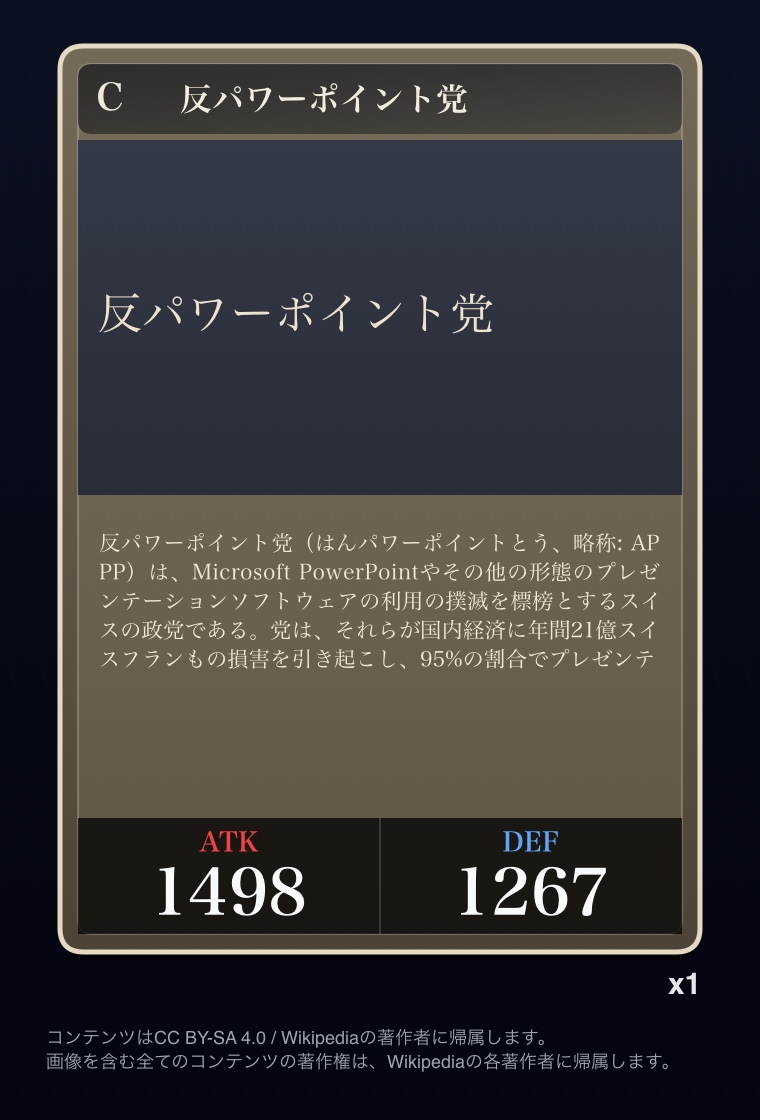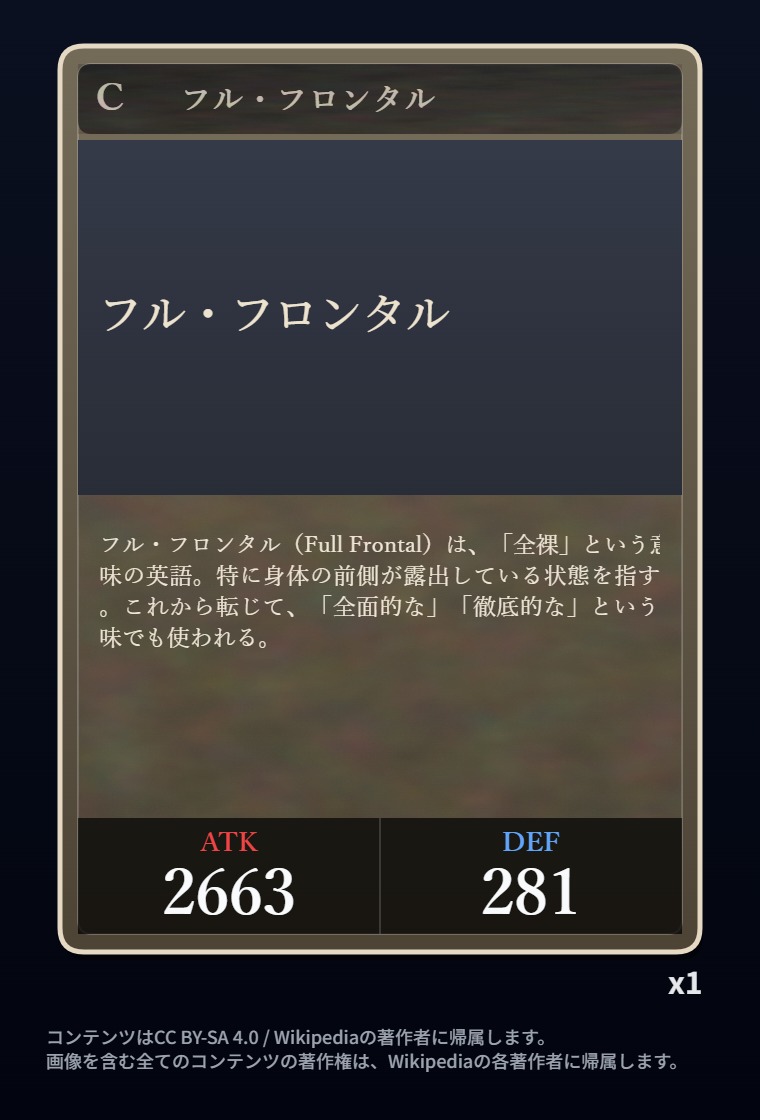 | … | 25026/03/07(土)00:02:51No.1408342401+Wikipediaガチャ結果: |