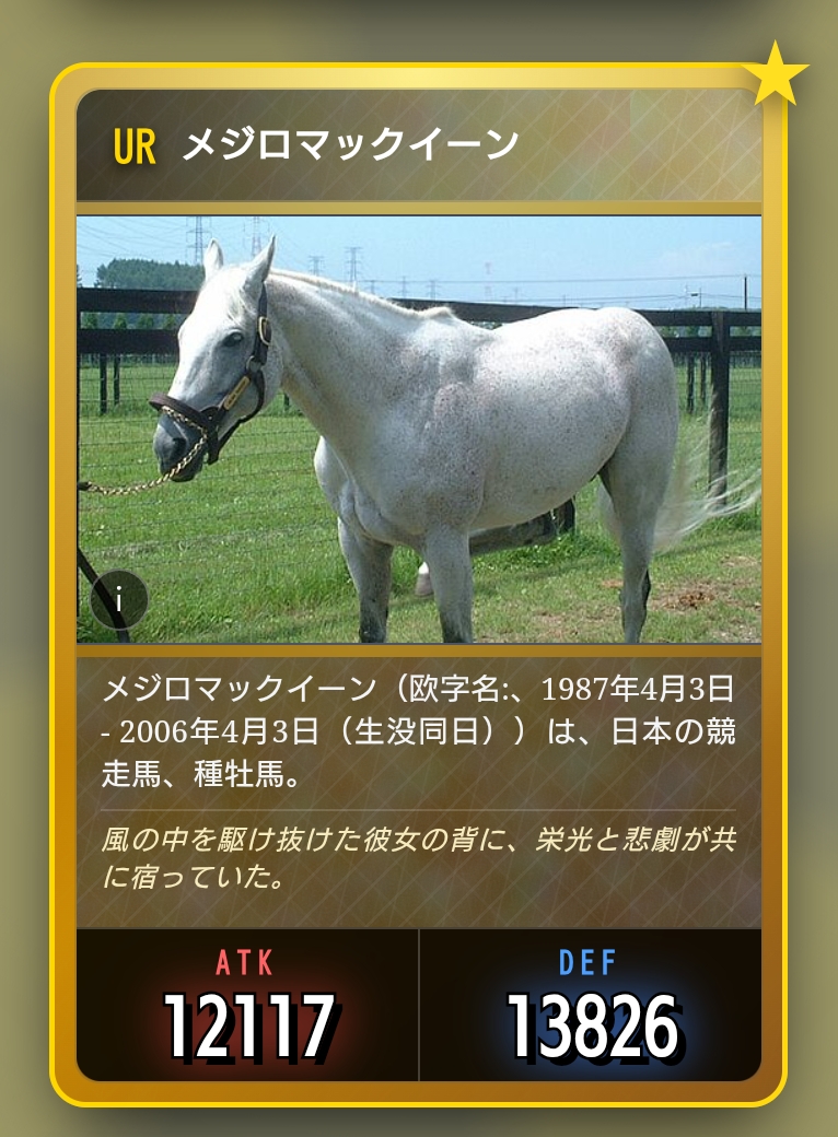 | … | 20626/03/06(金)23:54:20No.1408339890+馬はSRのサクラユタカオーしかないなぁ |
