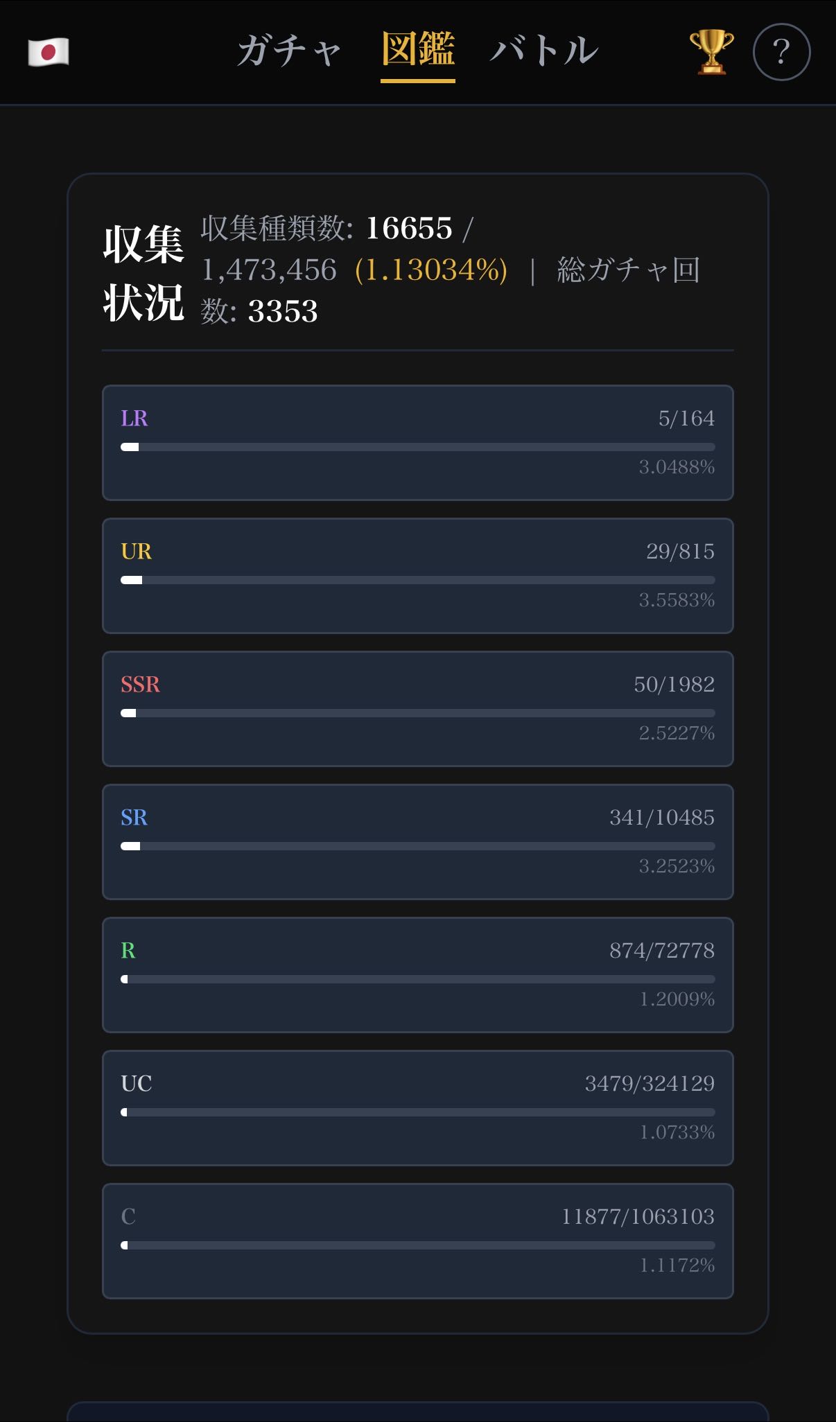 | … | 9526/03/06(金)23:21:40No.1408328928+いやまあLR164で総数1473456なんで大体0.01%なんだよな |