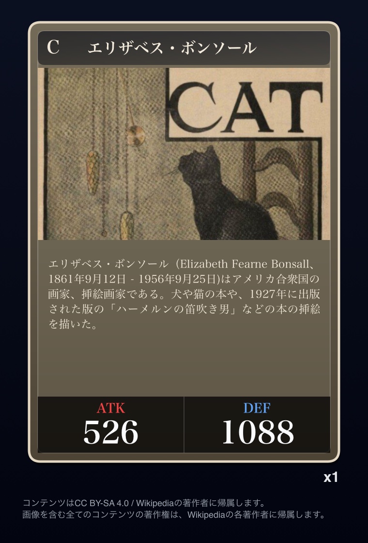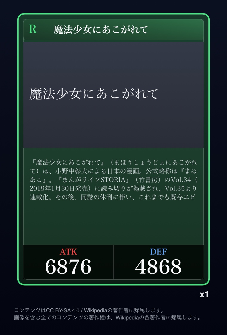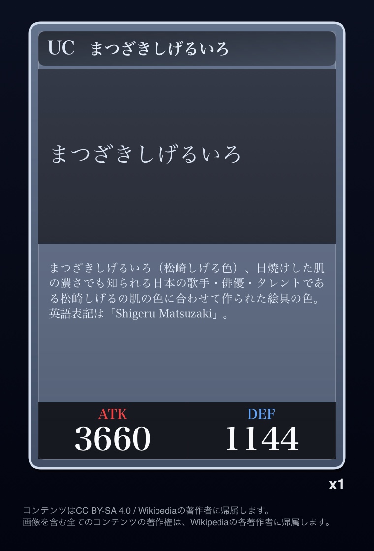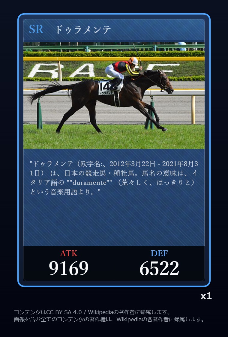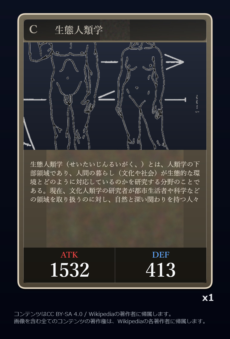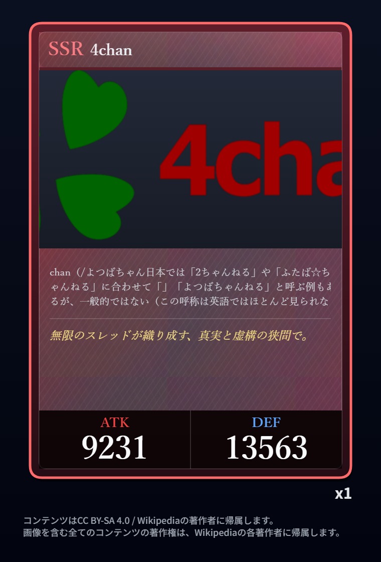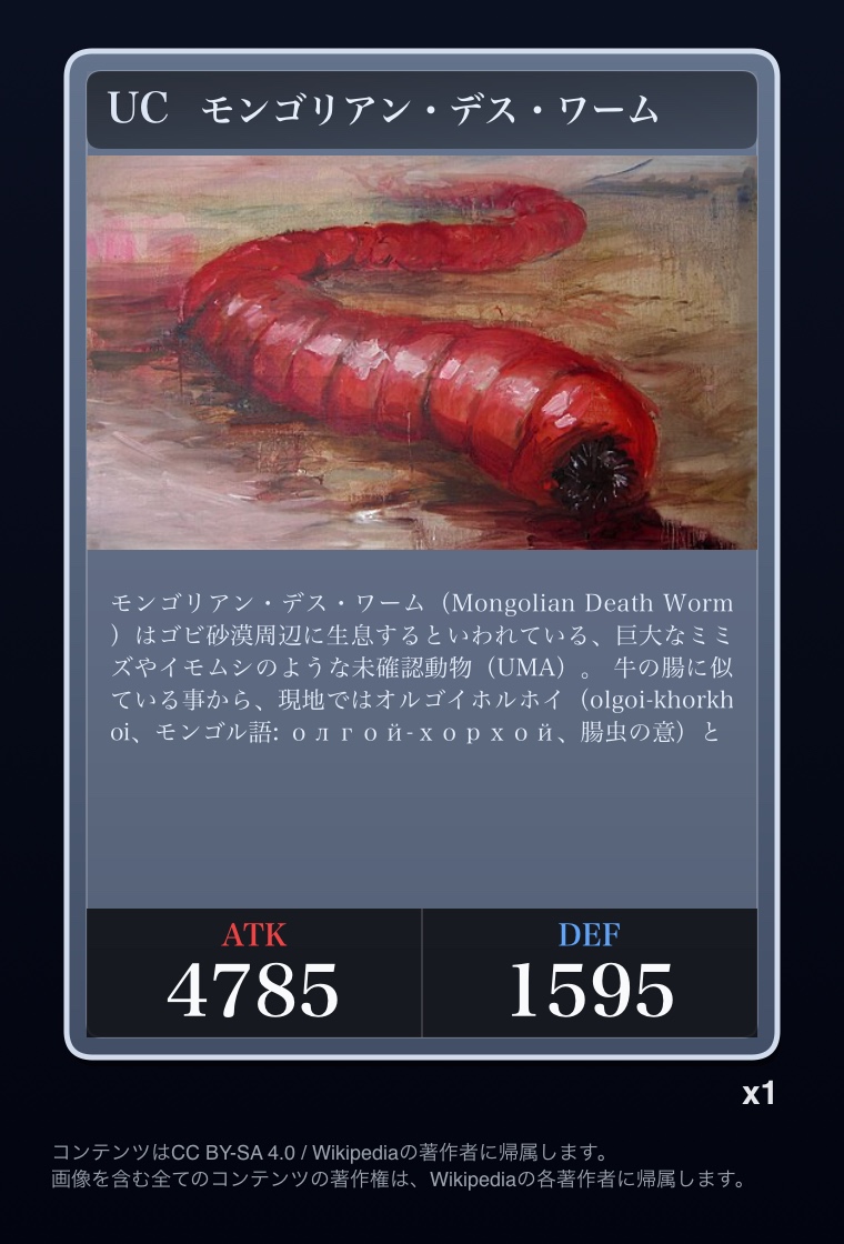 | … | 2326/03/07(土)00:32:00No.1408351352+記事が気になってWikipediaを開いてしまうカードは良いカード |